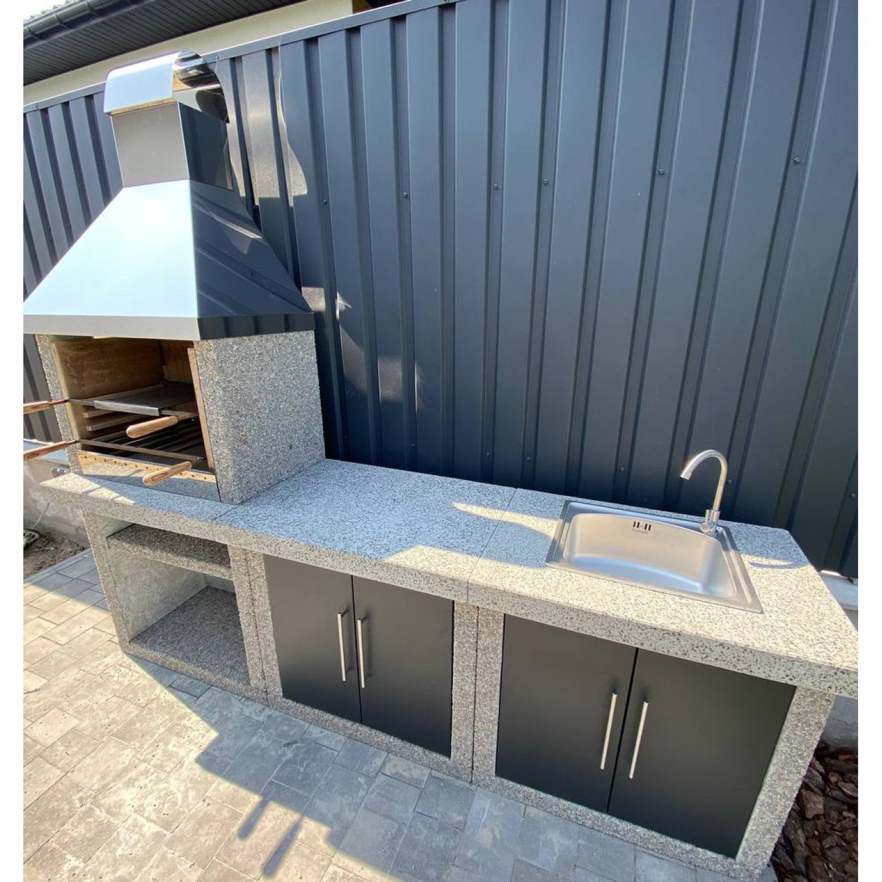 ТОВАР ТЯЖЕЛЫЙ! Перед оформлением заказа - уточняйте стоимость доставки. Уличный камин барбекю «Гарден Шеф» с фасадами комплект XM – это прекрасная покупка для вашей дачи. Сделанный из высококачественного бетона в стиле фактурной крошки, уличный барбекю прост в эксплуатации и сборке. Важным аргументом выбора барбекю в стиле фактурной крошки является его демократическая цена. Так же, такое исполнение печи не требует окрашивания. Произведен только на лучшем экологически чистом, европейском сырье. В комплекте идут специальные жаростойкие плиты из шамотного камня, выдерживающие температуру до 1300 градусов, что позволит использовать дрова, уголь и другое высокотемпературное топливо. Самый большой ассортимент в Украине. Доставим в любую точку Украины. Срок годности более 50 лет. Характеристики: ???? Глубина: 59 см; ???? Ширина: 243 см; ???? Общая высота: 235 см; ???? Вес: 1240 кг; ???? Высота столешницы: 85 см; ???? Размер гриля: 60*40 см; ???? Тип топлива: дрова, древесный уголь; Комплектация: Комплект плит барбекю; Комплект стола - 2 шт; Дымосборник из нержавеющей стали (пищевая AISI 304); Плиты шамота подового; Комплект огнеупорных плит; Заслонка для углей из нержавейки; Рамка для шампуров и сетки; Инструкция по сборке и эксплуатации. Дополнительные опции: керамогранит на столешницу: +6300 грн; доводчики на фасады: +900 грн; зольный ящик + колосниковая решетка: +3900 грн; *Вид изделий и цвет - может незначительно отличаться от представленных на фотографиях. **Мелкие сколы, воздушные раковины на бетоне не являются браком и ни как не повлияют на эксплуатацию.