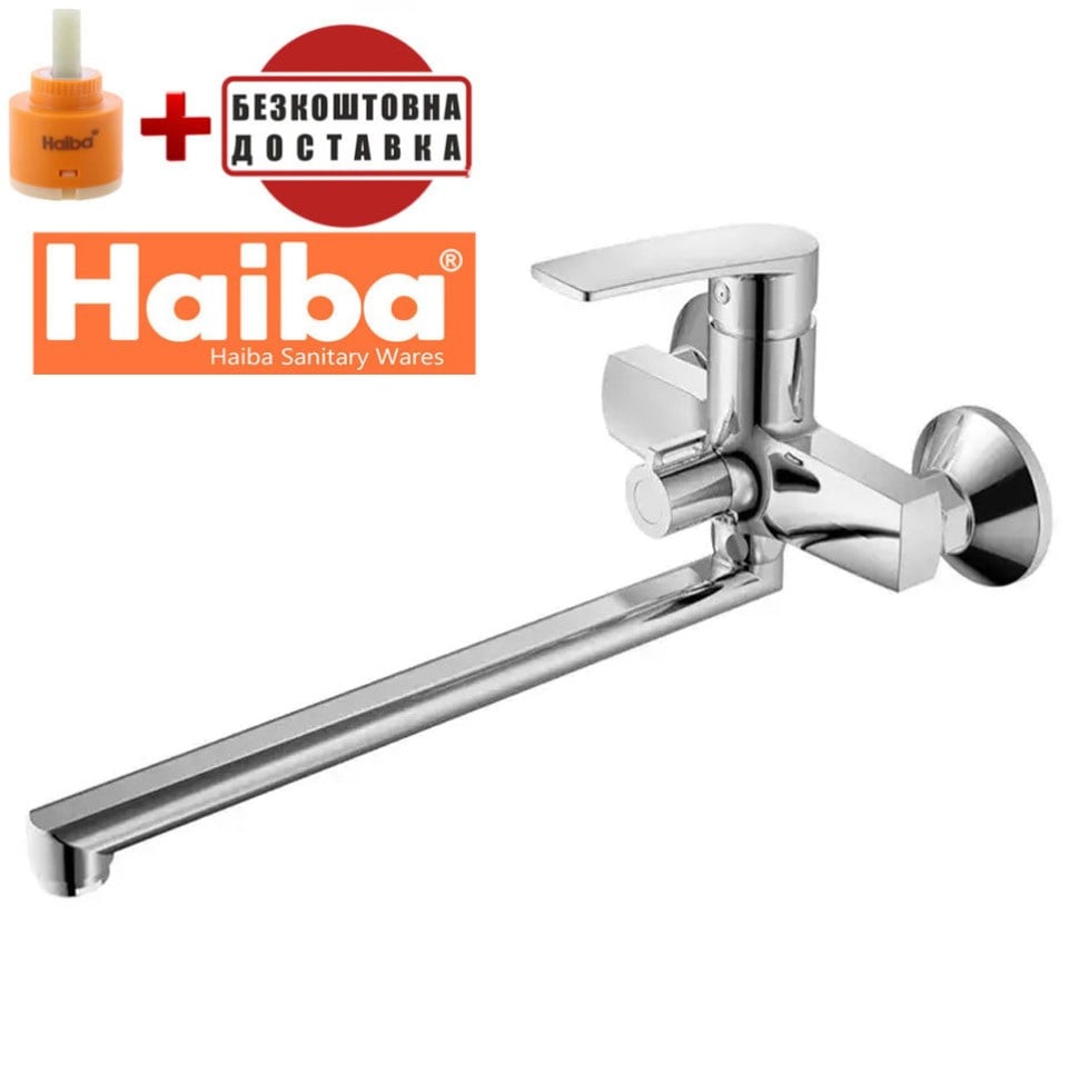 Змішувачі торгової марки HAIBA виготовляються на німецькому обладнанні з латуні найвищої якості. Контроль якості продукції HAIBA здійснюється фахівцями з Німеччини. У виробництві використовуються іспанські картриджі SEDAL та німецькі кран-букси. Латунний картриджний змішувач для ванної кімнати з довгим поворотним носом, з душовим шлангом і лійкою в комплекті. Змішувач призначений для настінного монтажу на два отвори. Принцип змішування води – одноважільний.