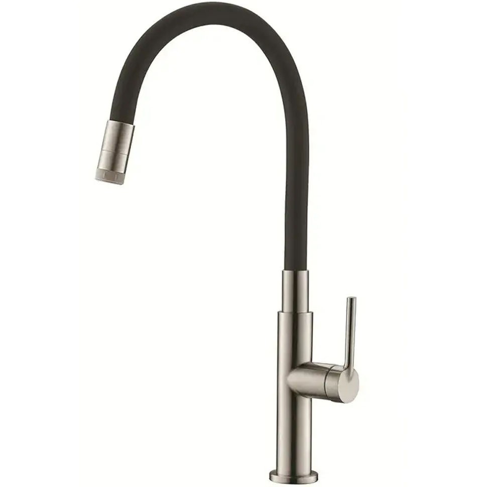 Змішувач для кухні Вухо KI-70032-02, чорний силіконовий гусак (колір нержавіюча сталь), Чехія