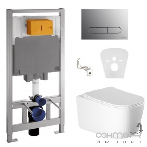 Опис Безободковый подвесной унитаз Volle Hippo 13-44-202 + инсталляция Volle Master 141515 панель смыва хром