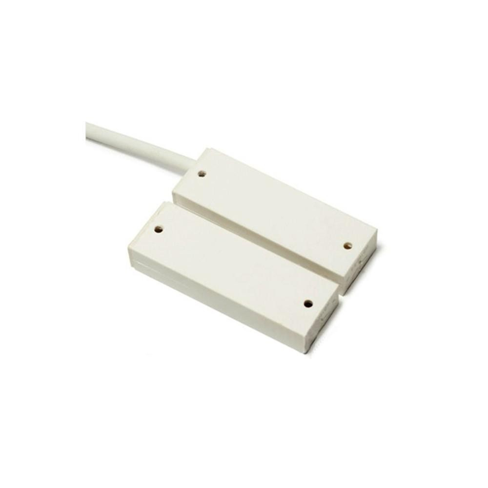 Датчик відкриття магнітоконтактний (геркон) на металеві поверхні, накладний тип установки, корпус пластиковий, черговий режим – 15 мм, режим тривоги – 28 мм. Колір білий.