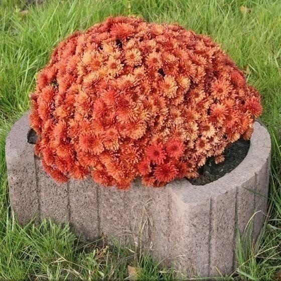 Опис Квітник круглий Золотий Мандарин 660х450х250 мм на сірому цементі коричневий
