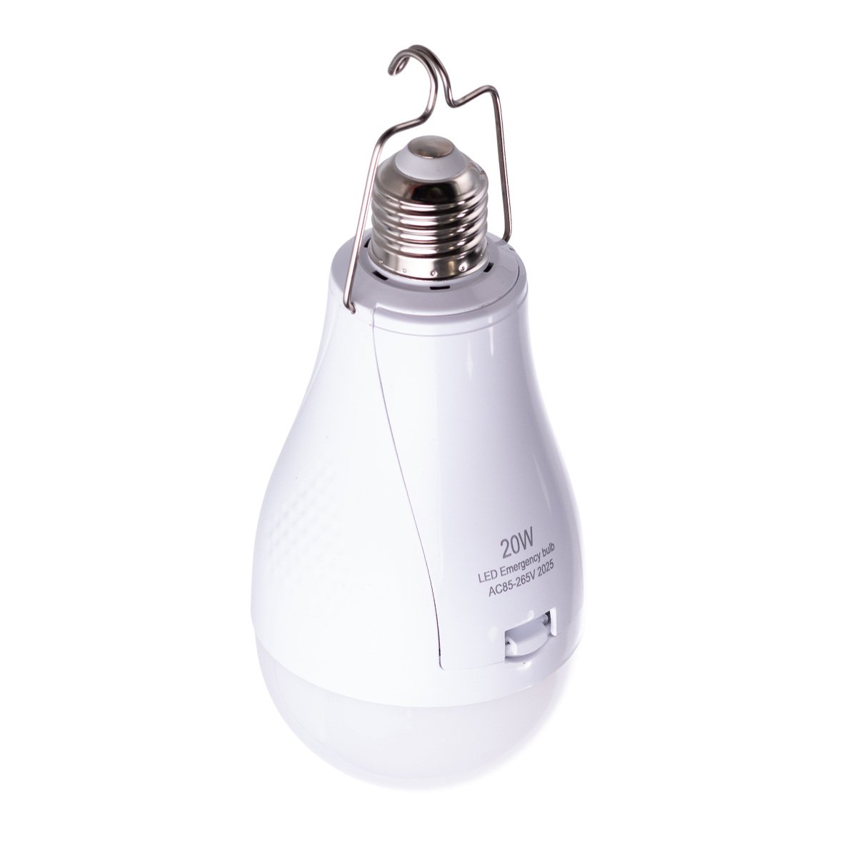 Ця інноваційна лампа поєднує у собі високу яскравість, енергоефективність та довговічність. Лампа підходить для цоколя E27 і заряджається прямо від мережі безпосередньо під час роботи або за допомогою кабелю USB від портативного джерела живлення. Особливості: Яскраве висвітлення. Світлодіоди забезпечують світловий потік 1400 Люмен за максимальної потужності до 20 Ватт.