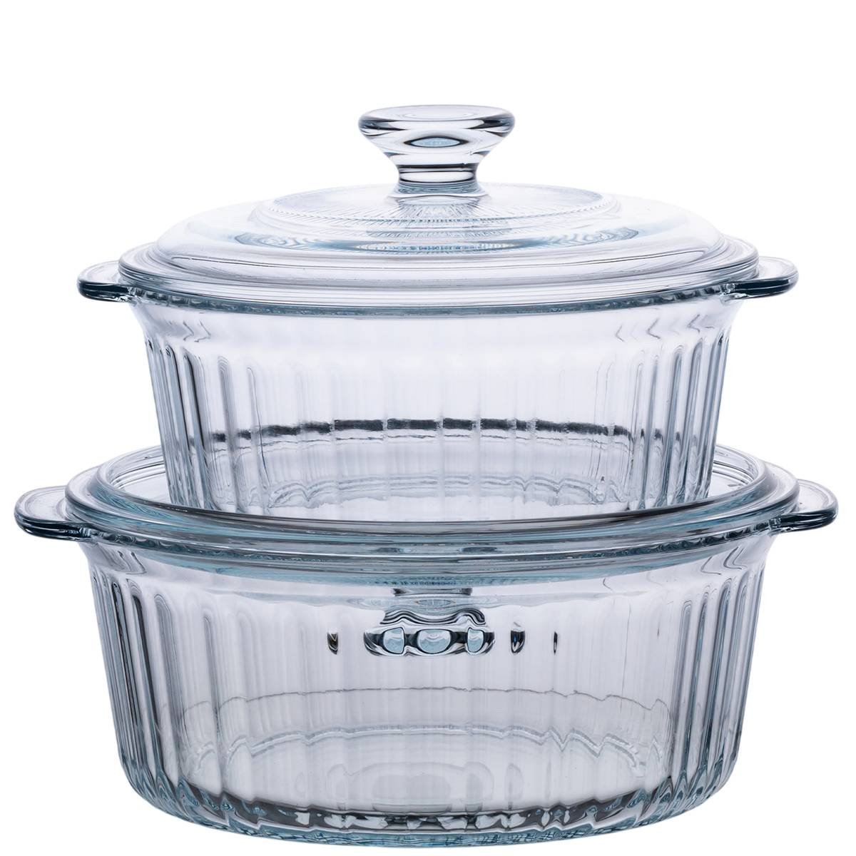 Набір скляних каструль - чудовий вибір для приготування різноманітних страв та сервірування столу. Каструлі виготовлені з якісного боросилікатного скла, підходять для більшості типів плит, духовки та мікрохвильової печі.