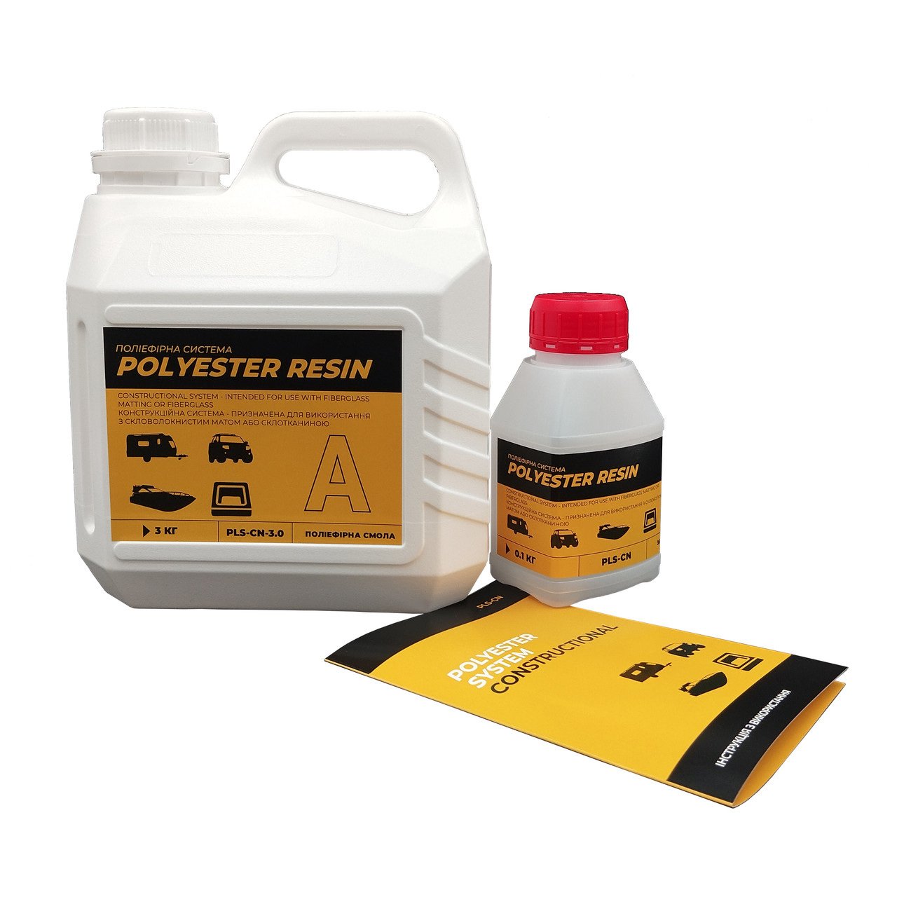 Поліефірна смола для ремонту авто, яхт 2 кг комплект з затверджувачем Turkuaz набір TP220-2