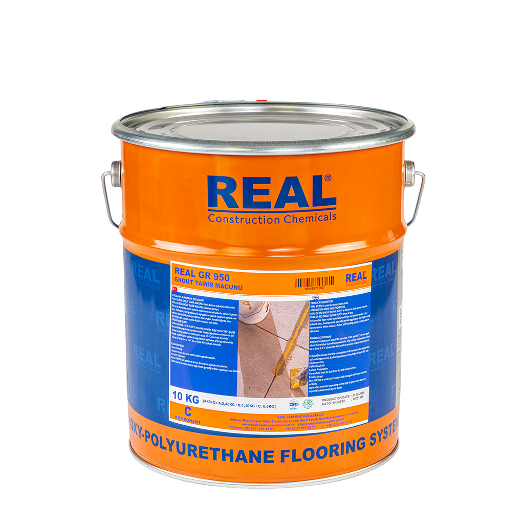 REAL GR 950 – это трёхкомпонентная безрастворительная эпоксидная шпаклёвка, состоящая из специально подобранных заполнителей и высокопрочных эпоксидных смол. После смешивания образует самовыравнивающуюся эпоксидную пасту, идеально подходящую для заполнения трещин, выбоин и дефектов бетонных полов. Применяется как для наружных, так и для внутренних работ в промышленных условиях.