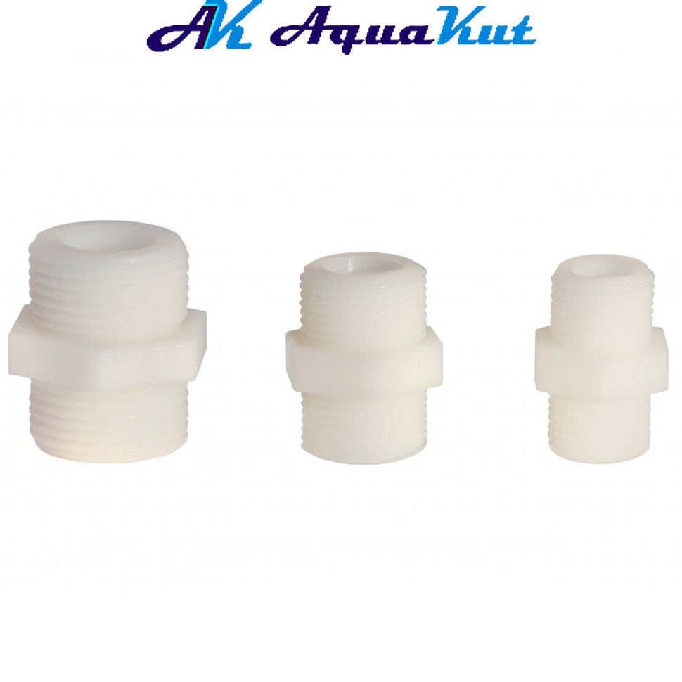 Перехідник Aquakut НР-М66-НР 3/4" HP 66 гайка - 3/4" НР міжколбовий - це міцний з'єднувальний елемент, що використовується для об'єднання фільтрових колб стандартного типу з різьбленням 3/4". конструкції перехідник запобігає протіканню і витримує робочий тиск у побутових та професійних системах очищення води.