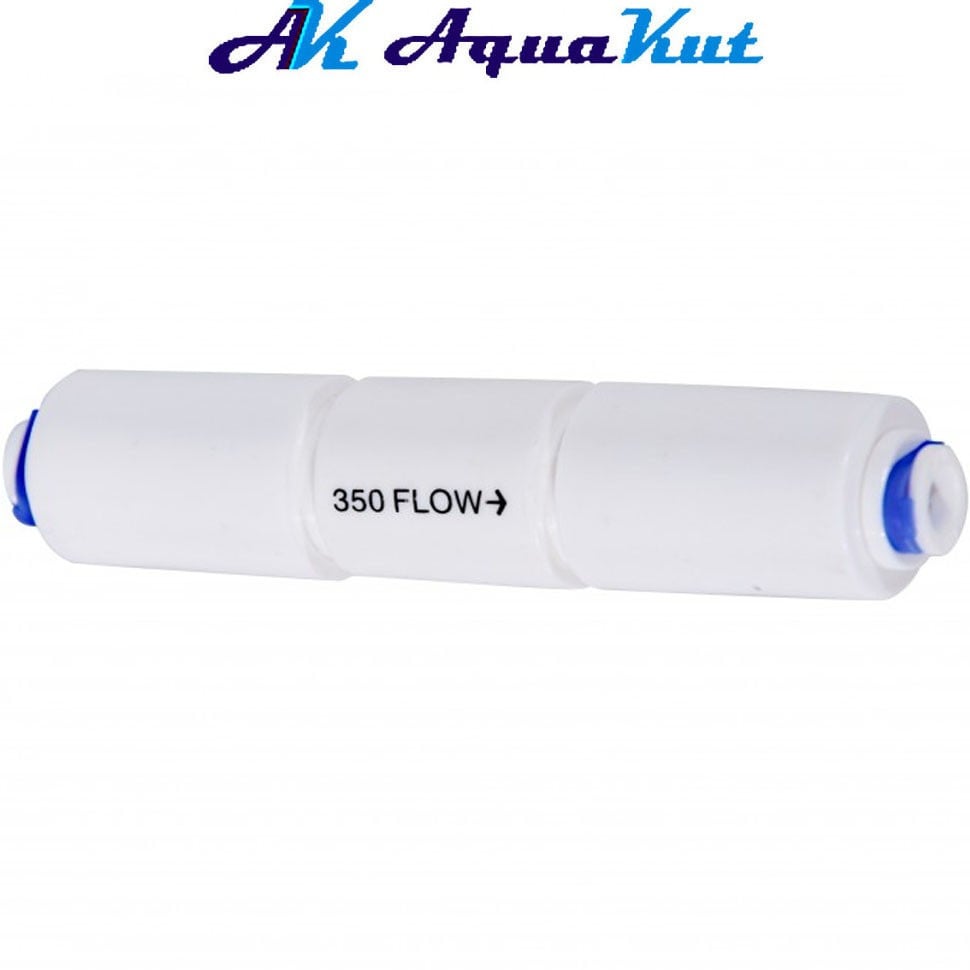 Встановлюється на дренажний вихід після мембрани (50 GPD), створюючи необхідний тиск для ефективної роботи мембрани та забезпечуючи її промивання. Неправильний підбір або несправність обмежувача може призвести до засмічення мембрани або надмірного скидання води. Підходить для систем AquaKut та інших сумісних фільтрів.