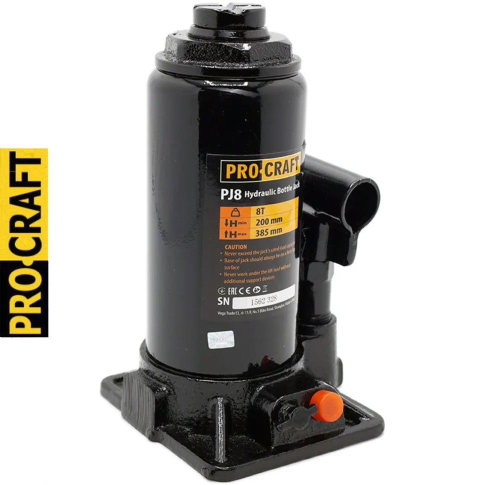 Домкрат гідравлічний Procraft PJ8 ідеально підходить для автолюбителів і професіоналів. Цей гідравлічний пляшковий домкрат досить потужний, щоб піднімати з землі автомобілі вагою до 8 тонн. Він спроектований так, щоб спростити і прискорити процес підйому автомобілів. Діапазон робочої висоти становить 200-385 мм. Цей пристрій підійде для використання в промислових цілях, а також для того, щоб проводити ремонтні роботи автомобіля у своєму гаражі.