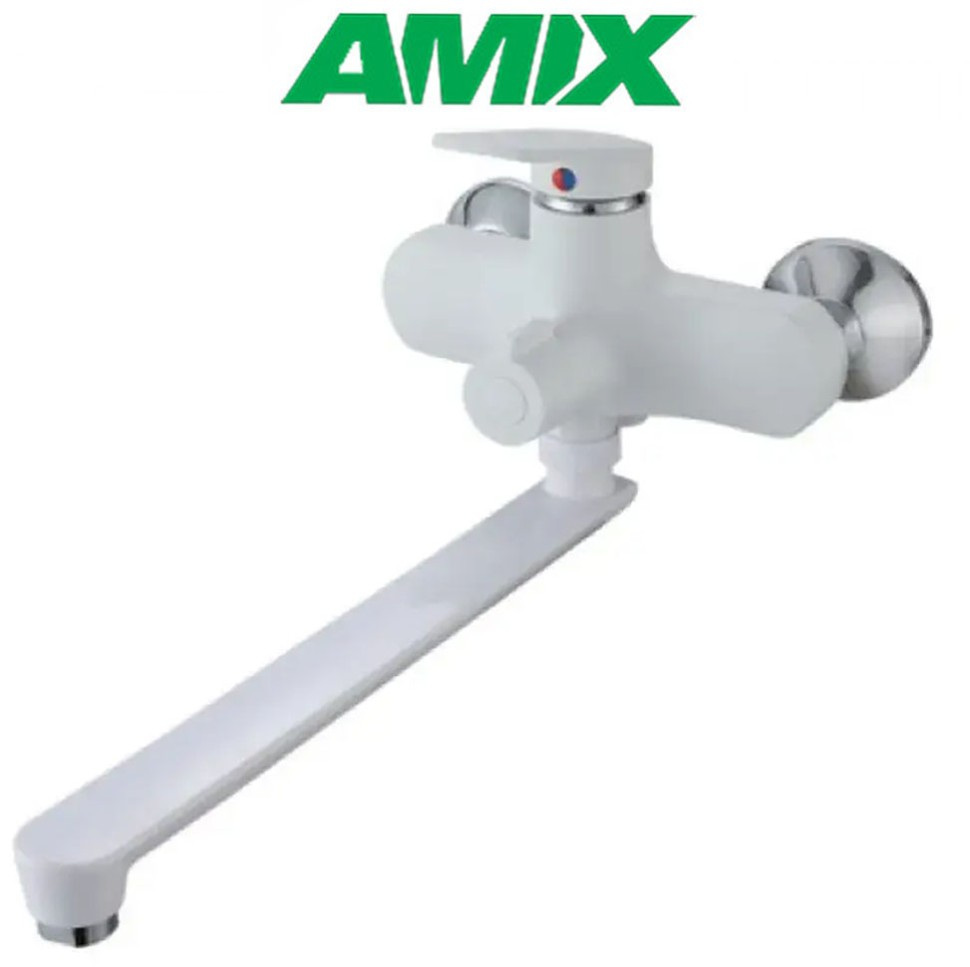 Змішувач для ванни з термопластику AMIX Lucas-009 EURO SET White (зі шлангом, лійки та кронштейном), Білий