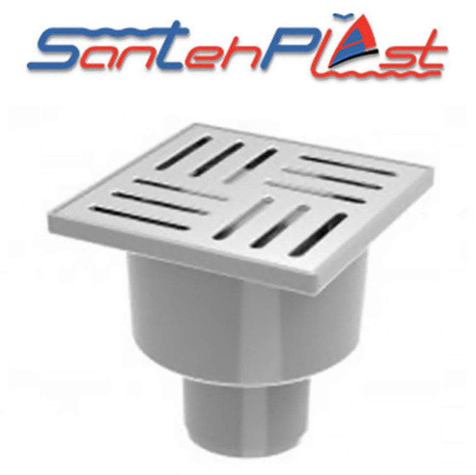 Душовий трап SantehPlast TV-100-50.03 оснащений решіткою з нержавіючої сталі розміром 100×100 мм та вертикальним випуском діаметром DN50. Пристрій має гідрозатвор, що запобігає проникненню неприємних запахів з каналізації. Трапи цієї моделі встановлюються в душових приміщеннях, громадських туалетах та роздягальнях. Основні функції трапу включають відведення відпрацьованої води до зливного каналу, запобігання попаданню в злив предметів, здатних викликати засмічення, створення герметичного з'єднання зі стикувальною зоною, захист від неприємних запахів та забезпечення додаткового аварійного зливу води у разі затоплення.