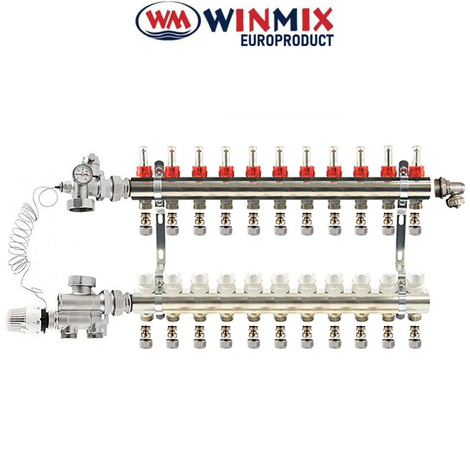 В асортименті колектор у зборі Winmix на 2-12 виходів з однією зливною групою.