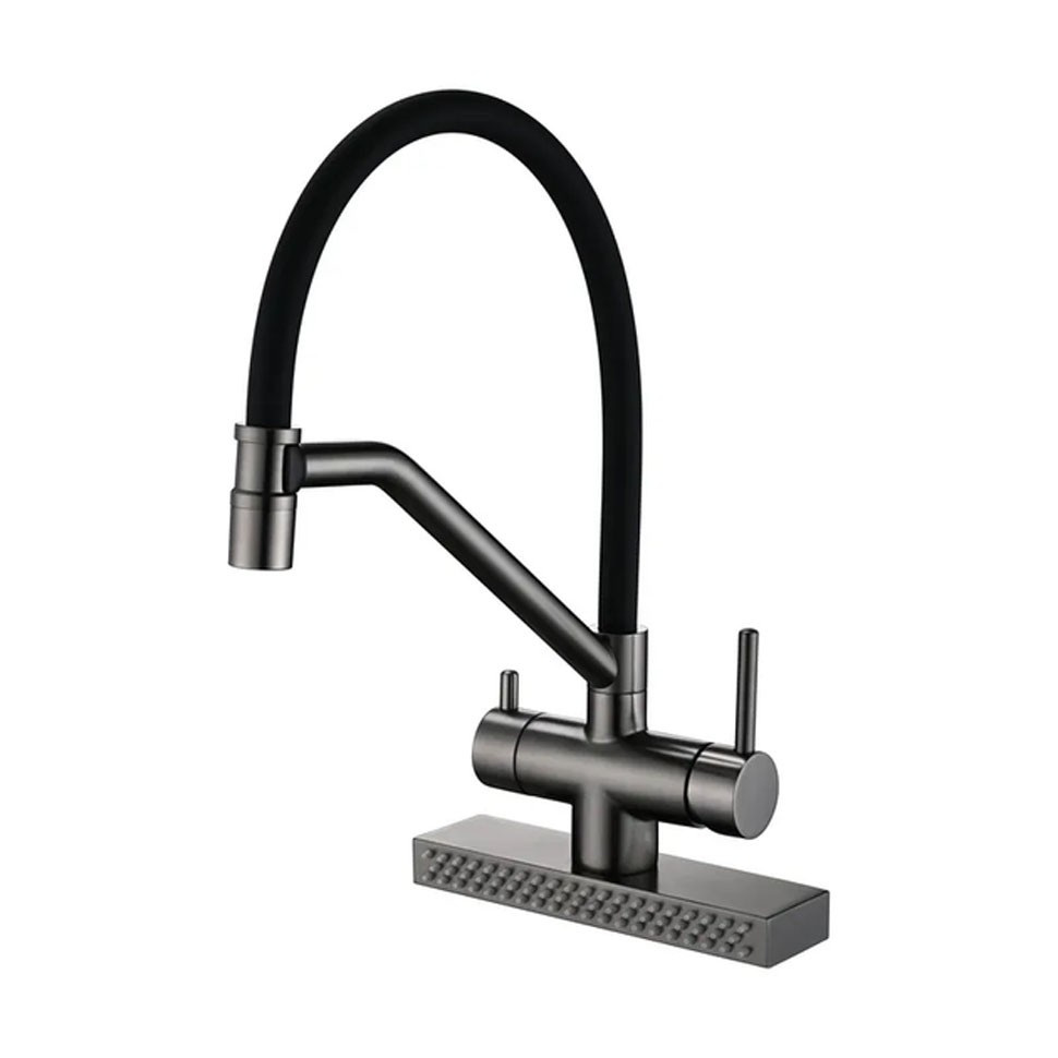 Опис Змішувач для кухні під осмос з водоспадом KB-74027-07 (графіт) силіконовий чорний гусак, Чехія