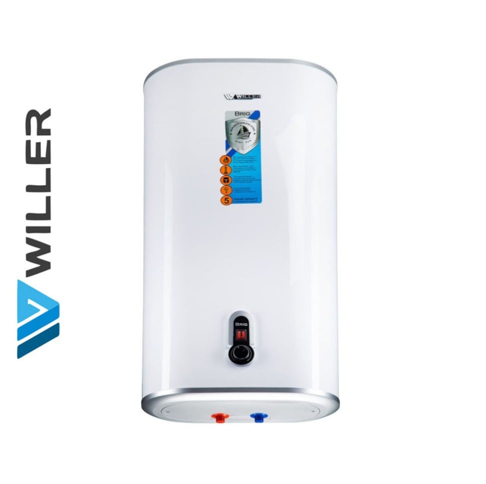 WILLER IV100DR Brig – плоский електричний водонагрівач із внутрішнім баком із нержавіючої сталі AISI316 (відрізняється вищою антикорозійною стійкістю порівняно з поширеною AISI304). Мінімальна глибина виробу (295мм з урахуванням монтажних планок) дозволить встановити бойлер навіть у обмежених просторих умовах. У бойлері WILLER IV100DR Brig встановлені два сухі нагрівальні елементи потужністю 1000 Вт кожний.