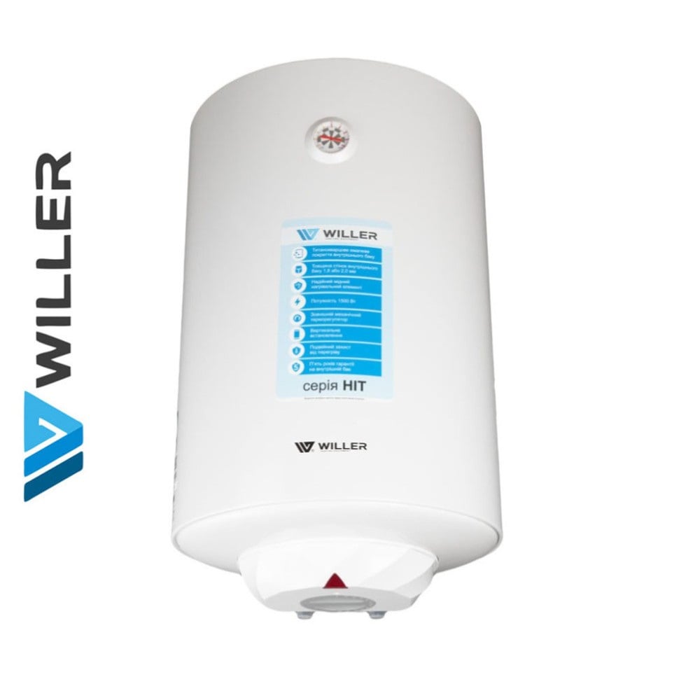 Надійний накопичувальний електричний водонагрівач WILLER EV30R-HIT циліндричної форми об'ємом 30 літрів. Оснащений мідним занурювальним (мокрим) нагрівальним елементом потужністю 1,5 кВт. Внутрішній бак, виготовлений із сталі, покритої титанокварцевою емаллю, та захисний магнієвий анод забезпечують тривалий термін експлуатації. Сфера застосування – нагрівання води для побутових цілей, для душу та ванни. Для використання у будинку, квартирі, на дачі.