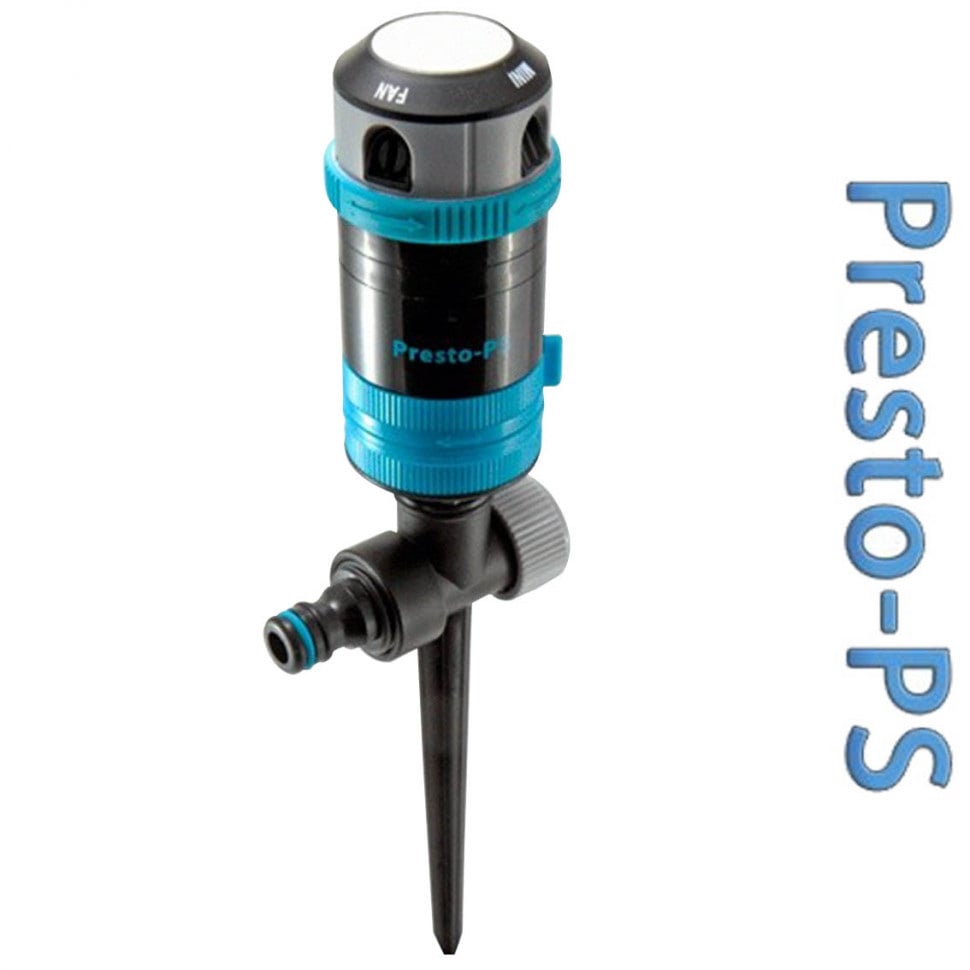 Дощувач чотирирежимний секторний Presto-PS Модуль (7812) використовується для зрошення газонів середньої та невеликої площі, підійде так само і для поливу городу. Ці дощувачі мають чотири режими регулювання форми струменя, від точкової до віяло з дрібною краплею "туман". Сектор поливу легко регулюється повзунками на зрошувачі від 10 до 360 °. Це дозволяє швидко налаштувати дощовик для точного поливу ділянок різного розміру та використовувати цей дощувач біля доріжок, залишаючи їх сухими. Максимальний діаметр захвату до 12 метрів, площа поливу 113 м ². Витрата води при тиску 2 атмосфери до 0,7 м /год. Використовується зрошувач із садовими шлангами діаметром 1/2, 5/8 та 3/4 дюйма. Знімна заглушка з різьбленням дозволяє підключати кілька таких дощувачів в одну лінію за допомогою адаптера з внутрішнім різьбленням та стандартного конектора. Робочий тиск, що рекомендується, в системі від 2 до 4 атмосфер. Мінімальний тиск необхідний роботи зрошувача становить 0,8 атмосфер. Для продовження терміну служби дощувача рекомендується використання системи подачі води фільтра грубої очистки.