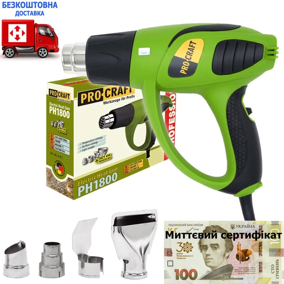 Промисловий фен Procraft PH1800 (4 насадки)+сетифікат