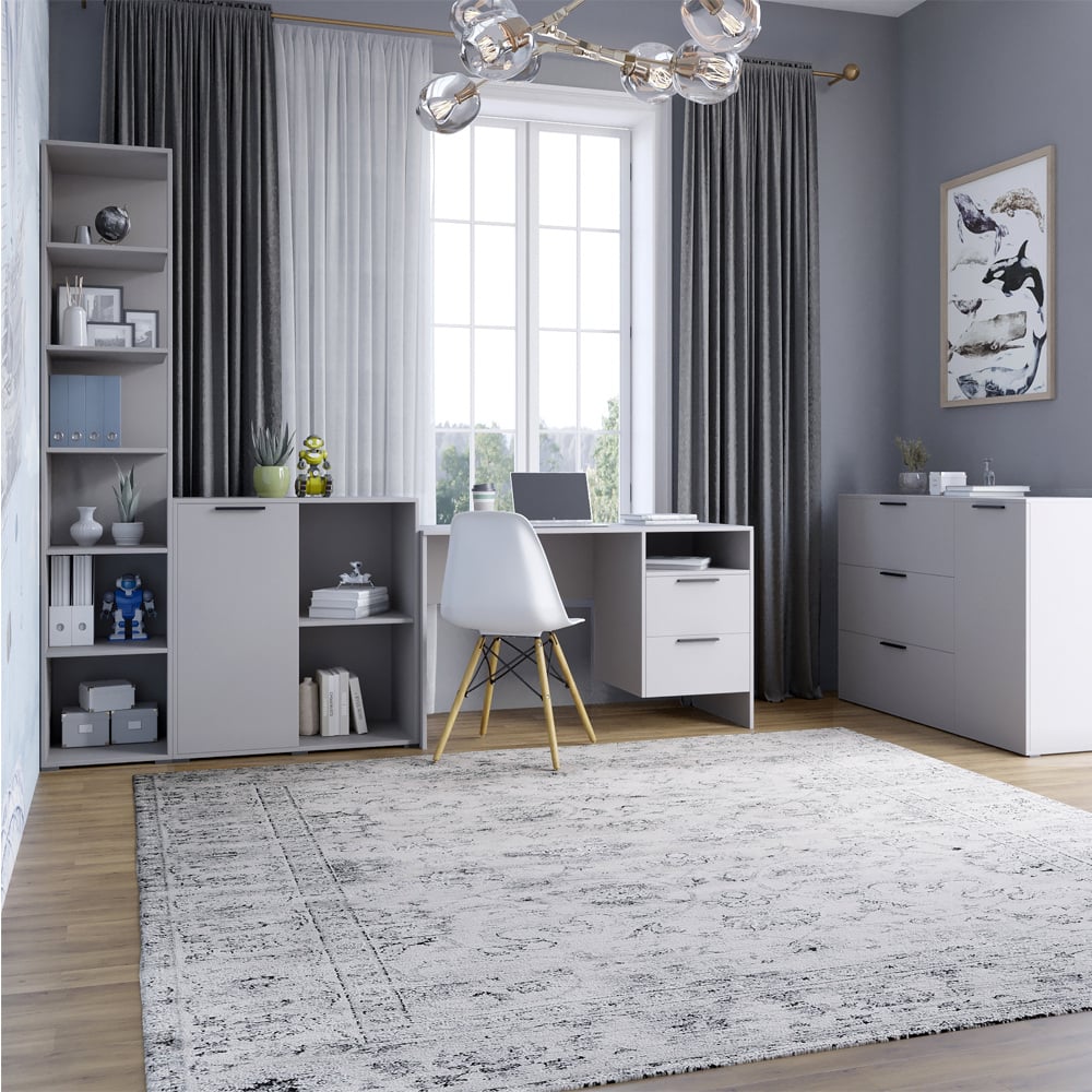 Гарнітур для кімнати Lion Краш із 4 елементів Колекція меблів Lion Краш - це стильне та функціональне рішення для вашого інтер'єру. В неї входять: Комод з 2 закритими полицями та 3 висувними ящиками на телескопічних напрямних, що забезпечують зручну організацію одягу, аксесуарів та інших речей. Тумба, що ідеально підходить для розміщення поряд з ліжком, диваном або письмовим столом, має компактні розміри та місткі відділення. Пенал з відкритими полицями, який чудово підійде для зберігання книг, декоративних предметів та дрібниць, створюючи стильний акцент. Письмовий стіл з ергономічним дизайном, що забезпечує комфортний робочий простір для навчання чи роботи. Короткий мінімалістичний дизайн колекції підкреслює сучасний стиль і дозволяє гармонійно поєднувати елементи між собою. Lion Краш легко впишеться в спальню, вітальню або кабінет, створюючи затишок, порядок та функціональність у вашому будинку. Матеріал виготовлення Гарнітур виготовлений з ЛДСП SWISS KRONO - високоякісного матеріалу, який відрізняється міцністю, стійкістю до механічних пошкоджень, вологи та високих температур. Це гарантує довговічність меблів та її привабливий зовнішній вигляд. Сучасний стиль: мінімалістичний дизайн гармонійно доповнює сучасну естетику інтер'єру. Місткість: кожен елемент меблів оснащений просторими відділеннями, що забезпечують порядок та зручність зберігання. Зручність: оптимальні розміри дозволяють легко інтегрувати меблі як у великі, так і невеликі приміщення. Надійність: високоякісний ЛДСП на телескопічні напрямні ящиків гарантують довговічність та стійкість конструкції. Розміри: Комод: Ширина: 1200 мм Глибина: 430 мм Висота: 860 мм Пенал з відкритими полицями: Ширина: 350 мм Глибина: 500 мм Висота: 2000 мм Письмовий стіл: Ширина: 1250 мм Глибина: 520 мм Висота: 820 мм Глибина: 430 мм Висота: 860 мм