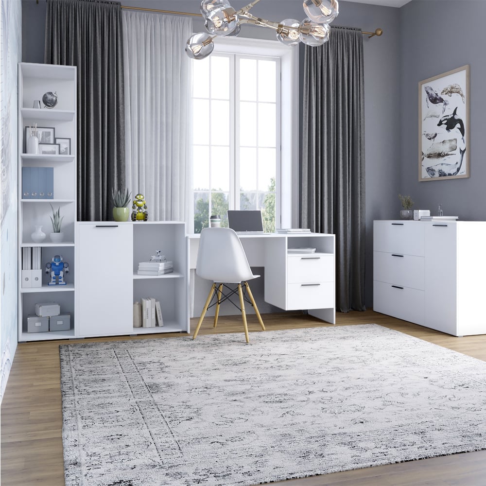 Гарнітур для кімнати Lion Краш із 4 елементів Колекція меблів Lion Краш - це стильне та функціональне рішення для вашого інтер'єру. В неї входять: Комод з 2 закритими полицями та 3 висувними ящиками на телескопічних напрямних, що забезпечують зручну організацію одягу, аксесуарів та інших речей. Тумба, що ідеально підходить для розміщення поряд з ліжком, диваном або письмовим столом, має компактні розміри та місткі відділення. Пенал з відкритими полицями, який чудово підійде для зберігання книг, декоративних предметів та дрібниць, створюючи стильний акцент. Письмовий стіл з ергономічним дизайном, що забезпечує комфортний робочий простір для навчання чи роботи. Короткий мінімалістичний дизайн колекції підкреслює сучасний стиль і дозволяє гармонійно поєднувати елементи між собою. Lion Краш легко впишеться в спальню, вітальню або кабінет, створюючи затишок, порядок та функціональність у вашому будинку. Матеріал виготовлення Гарнітур виготовлений з ЛДСП SWISS KRONO - високоякісного матеріалу, який відрізняється міцністю, стійкістю до механічних пошкоджень, вологи та високих температур. Це гарантує довговічність меблів та її привабливий зовнішній вигляд. Сучасний стиль: мінімалістичний дизайн гармонійно доповнює сучасну естетику інтер'єру. Місткість: кожен елемент меблів оснащений просторими відділеннями, що забезпечують порядок та зручність зберігання. Зручність: оптимальні розміри дозволяють легко інтегрувати меблі як у великі, так і невеликі приміщення. Надійність: високоякісний ЛДСП на телескопічні напрямні ящиків гарантують довговічність та стійкість конструкції. Розміри: Комод: Ширина: 1200 мм Глибина: 430 мм Висота: 860 мм Пенал з відкритими полицями: Ширина: 350 мм Глибина: 500 мм Висота: 2000 мм Письмовий стіл: Ширина: 1250 мм Глибина: 520 мм Висота: 820 мм Глибина: 430 мм Висота: 860 мм