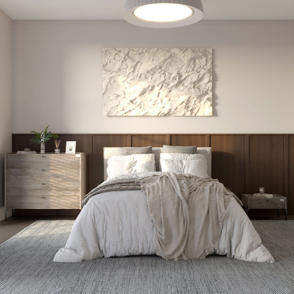 Гарнітур у спальню 2 елементи Lion Wood Комплект меблів для спальні Lion Wood - це вдале поєднання стилю, зручності та функціональності, яке допоможе створити затишний простір і підкреслити сучасний дизайн вашого інтер'єру. Комплект включає ТВ-тумбу з двома дверцятами і двома шухлядами, ТВ-тумбу з трьома шухлядами, практичний комод і приліжкову тумбу з однією шухлядою. Усі елементи набору виконані в актуальному скандинавському стилі, який надає меблям свіжого та сучасного вигляду. Lion Wood об'єднує практичність і витонченість, створюючи атмосферу затишку і гармонії у вашому домі. Матеріал виготовлення Комплект виготовлено з ЛДСП SWISS KRONO - високоякісного матеріалу, що поєднує естетику з міцністю і надійністю. ЛДСП від SWISS KRONO відомий своєю стійкістю до механічних пошкоджень, вологи та високих температур, що гарантує довговічність меблів і зберігає їхній естетичний вигляд на довгі роки. Особливості Комплексне рішення для спальні: меблі забезпечують єдиний стиль і завершений вигляд кімнати, поєднуючи зручність зберігання, естетичну привабливість і комфорт для повсякденного життя. Сучасний механізм відкривання: шухляди на телескопічних напрямних забезпечують максимальний комфорт у використанні та дають змогу зберігати різні речі в організованому порядку. Металеві ніжки. Надають комплекту стійкості та сучасного стилю, зберігаючи форму. Кромка 2 мм - захищає краї виробів від пошкоджень, надає їм естетично завершеного вигляду і підвищує довговічність меблів. Кромку виготовляють із міцних матеріалів, що дає змогу їй витримувати інтенсивне використання і зберігати привабливий зовнішній вигляд протягом багатьох років. Розміри: Комод: Ширина: 1000 мм Глибина: 450 мм Висота: 900 мм Приліжкова тумба: Ширина: 500 мм Глибина: 400 мм Висота: 315 мм