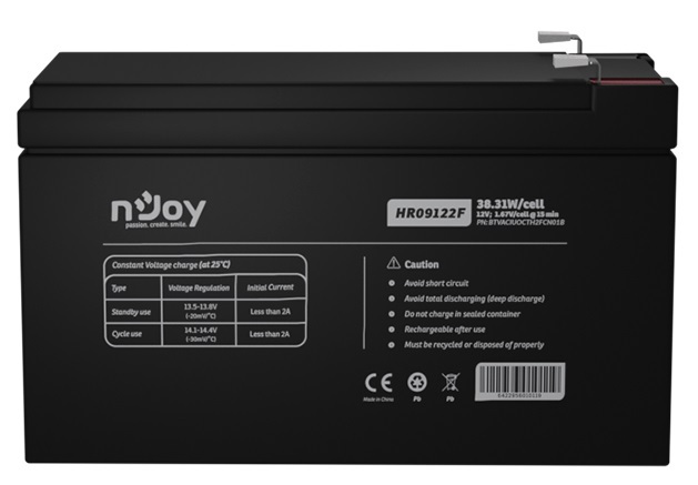 Герметичный аккумулятор nJoy HR09122F обеспечивает долгосрочное и надежное качество. Они полностью не требуют обслуживания и имеют низкий саморазряд - всего 2% мощности, сниженной в месяц. nJoy HR09122F отличается прекрасным временем зарядки и перезарядки, а также расчетным сроком службы в плавающем режиме и в режиме ожидания от 3 до 5 лет. Вы получите более 260 циклов при 100% глубине разряда. Вы можете лучше всего использовать nJoy HR09122F для систем безопасности, систем сигнализации, ИБП, медицинского оборудования, оборудования связи, систем аварийного питания, электроинструментов, игрушек, кабельного телевидения, контрольного оборудования.
