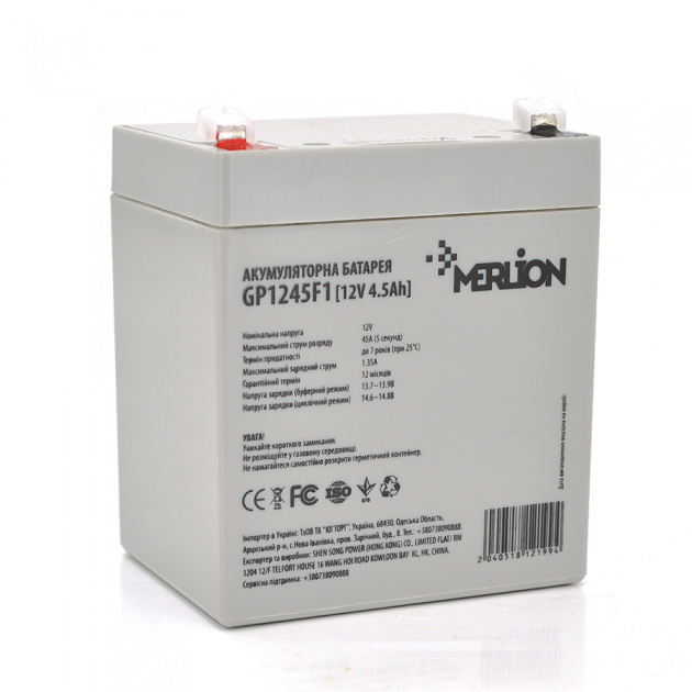 Характеристики товару Аккумуляторная батарея Merlion AGM GP1245F1 12V 4.5Ah