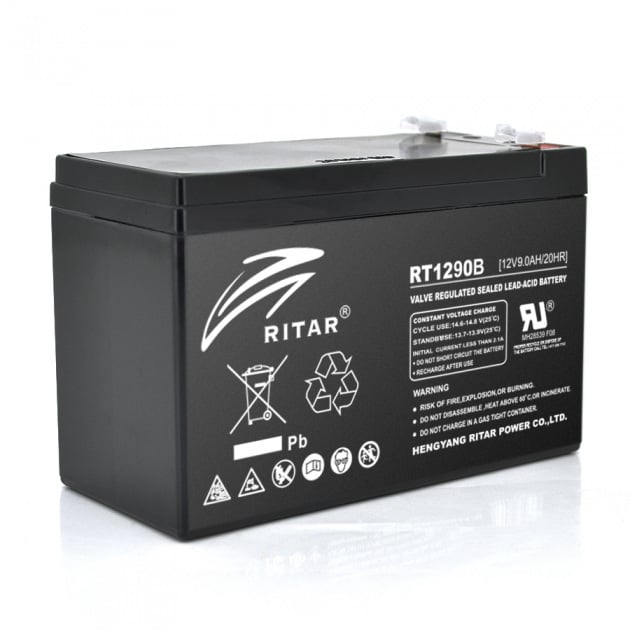 Аккумулятор свинцово-кислотный AGM Ritar RT1290B подходит для установки в системы UPS для ПК, системах видеонаблюдения и охранных сигнализациях. Время работы от ИБП прямопропорционально зависит от потребления питания тем же оборудованием.