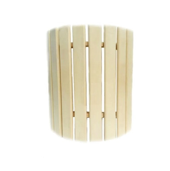 Ограждение для светильника в баню или сауну защитит не только от случайных прикосновений и ожогов, но и улучшит атмосферу в парилке. Чередование древесины липы украшает это ограждение, делая его приятным дополнением для интерьера любой сауны или бани. Свет, проходящий через деревянный абажур, создаст мягкое и приятное приглушенное освещение.