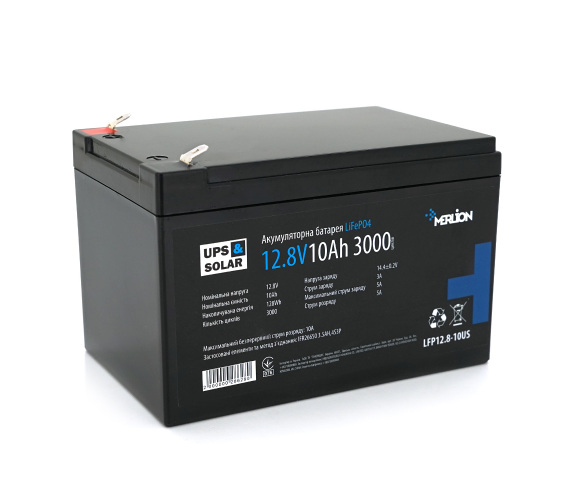Литий-железо-фосфатный аккумулятор Merlion LiFePO4 12.8V 10AH - важный элемент для обеспечения энергией твоей техники. Применяется для систем бесперебойного питания, систем хранения солнечной/ветровой энергии, телекоммуникаций, в осветительном и медицинском оборудовании.