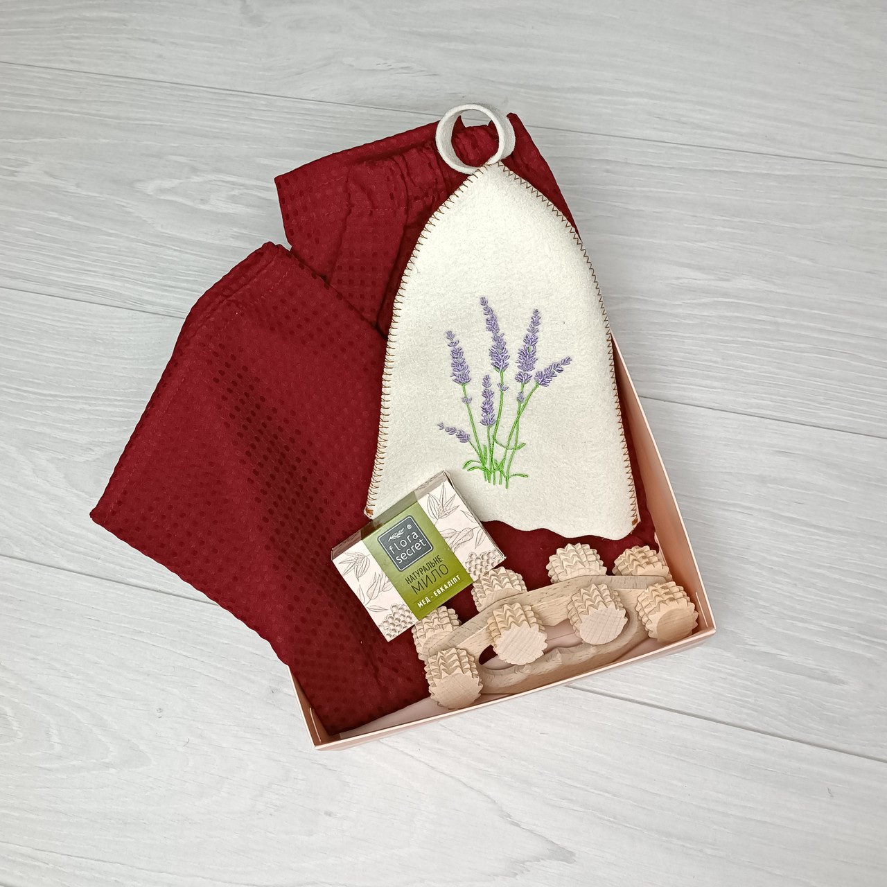 Практичный и компактный банный набор предназначен для настоящих ценителей, как традиционной бани, так и сухой финской сауны. Он послужит отличным подарком на любой праздник и сделает Ваши банные процедуры еще более приятными и комфортными.