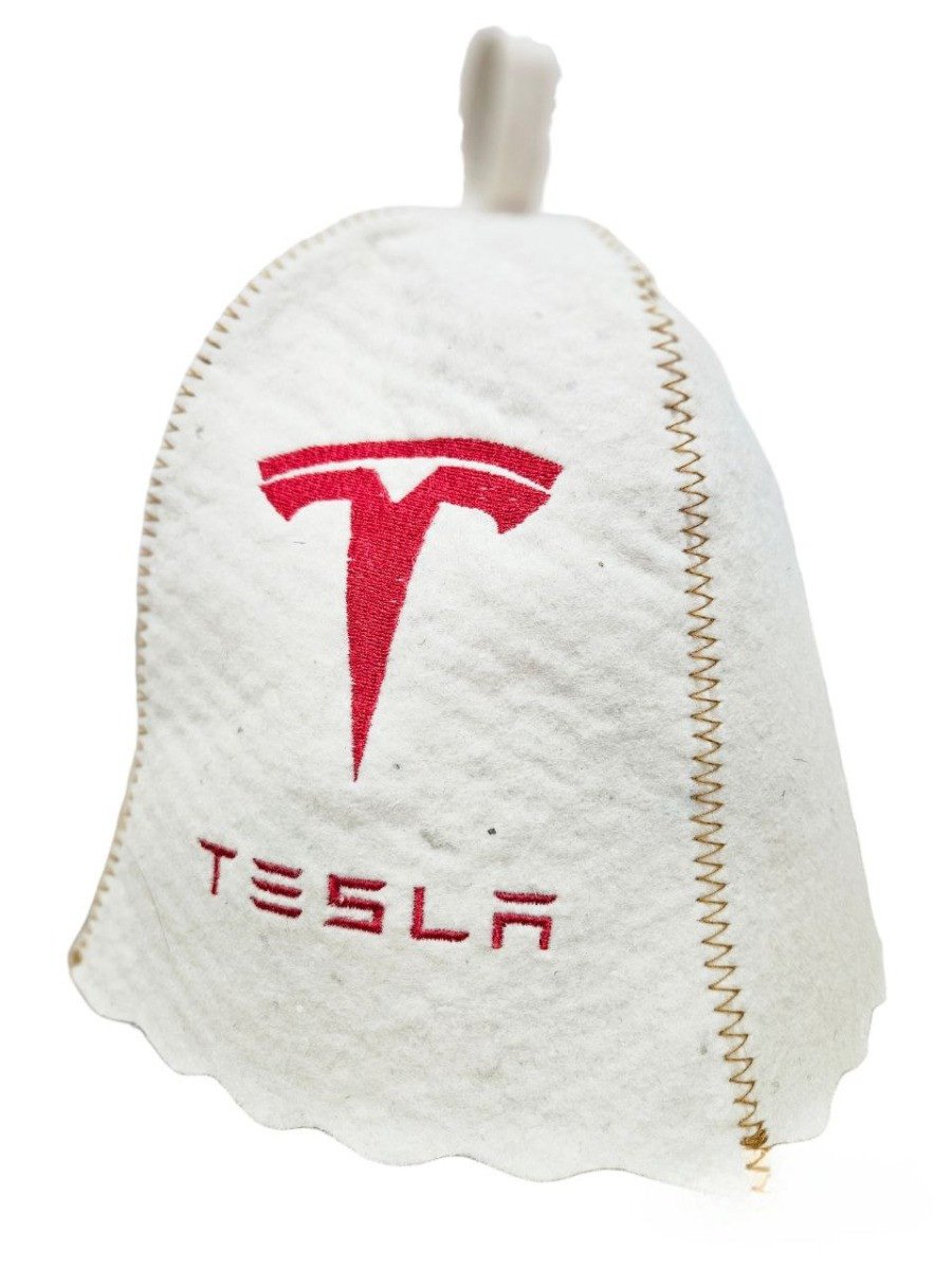Банная шапка с вышивкой " Tesla" изготовлена из натурального войлока. Цвет войлока белый.