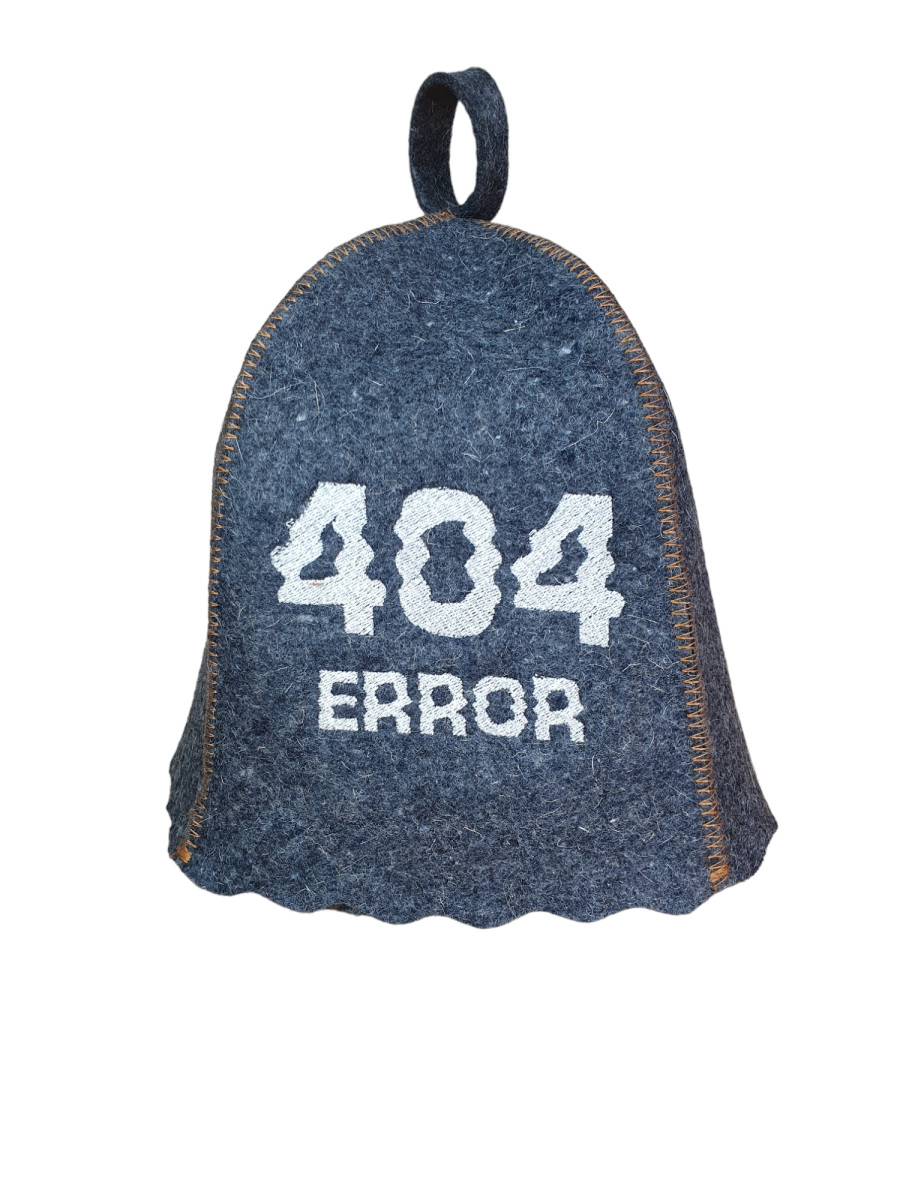 Банная шапка с вышивкой "404 error" изготовлена из натурального войлока. Цвет войлока серый.