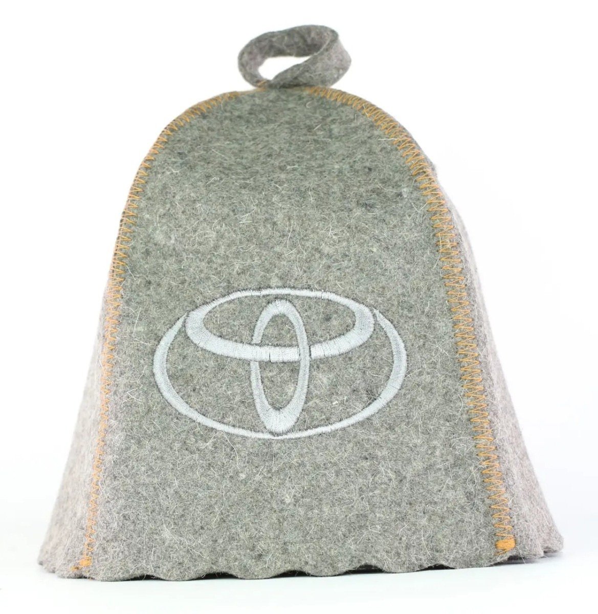 Банная шапка с вышивкой " Toyota" изготовлена из натурального войлока. Цвет войлока серый.