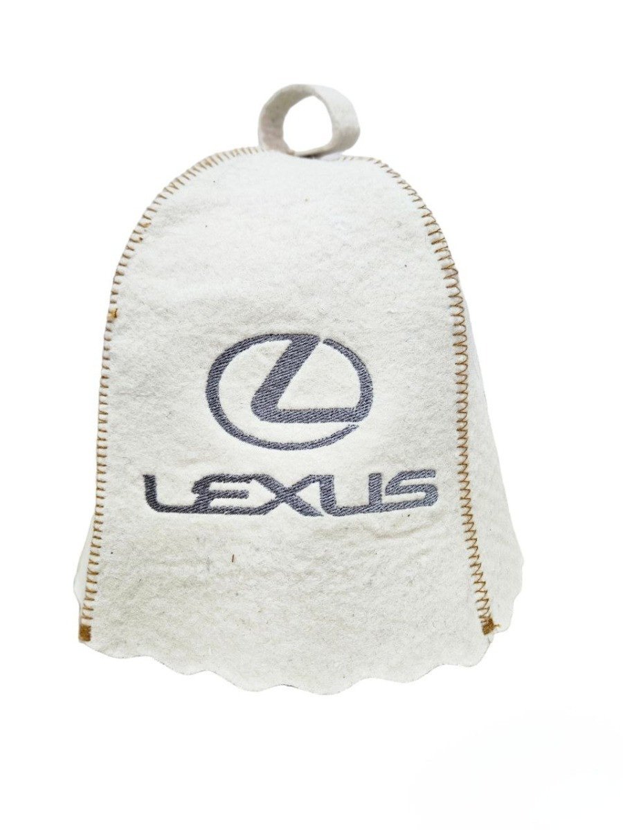 Банная шапка с вышивкой " Lexus" изготовлена из натурального войлока. Цвет войлока белый.