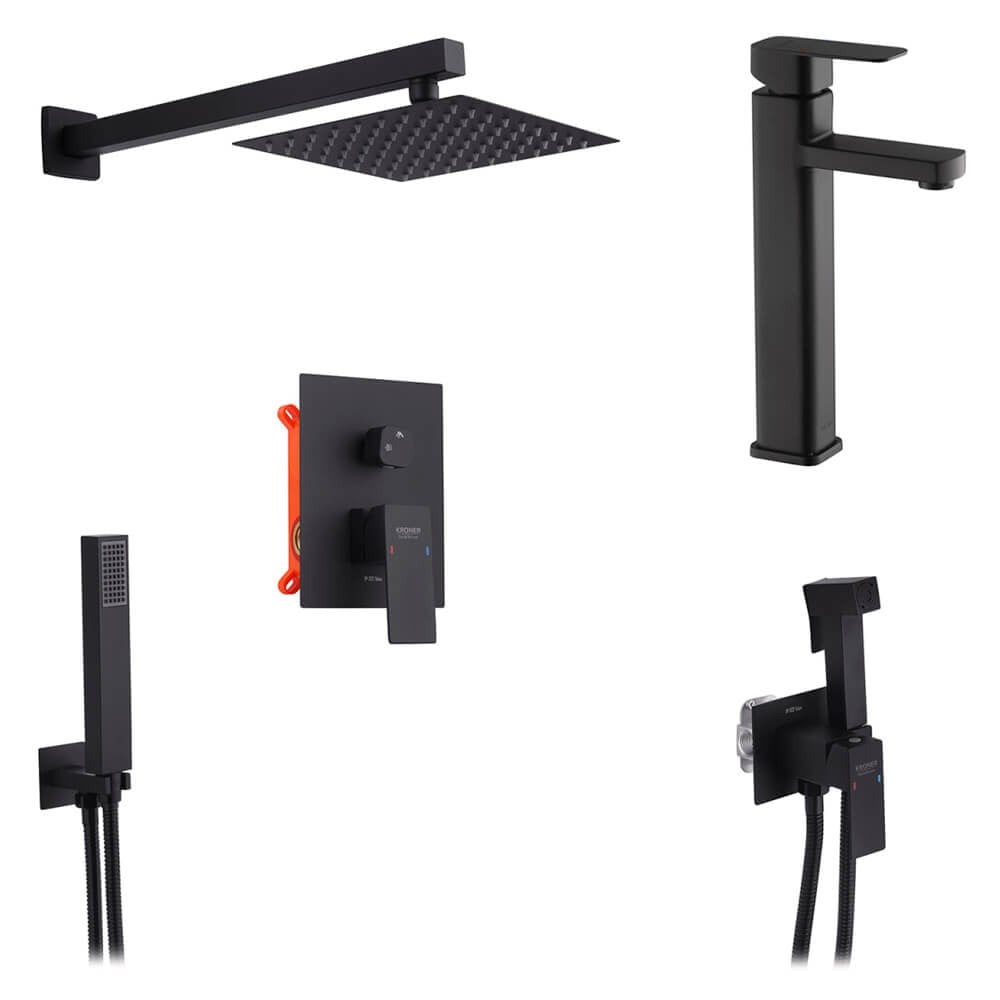 Набір 3 в 1 Kroner душова система Edelstahl Kubus-SCH082 + змішувач Edelstahl Kubus-SCH010-3 + змішувач Edelstahl Kubus-SCH053