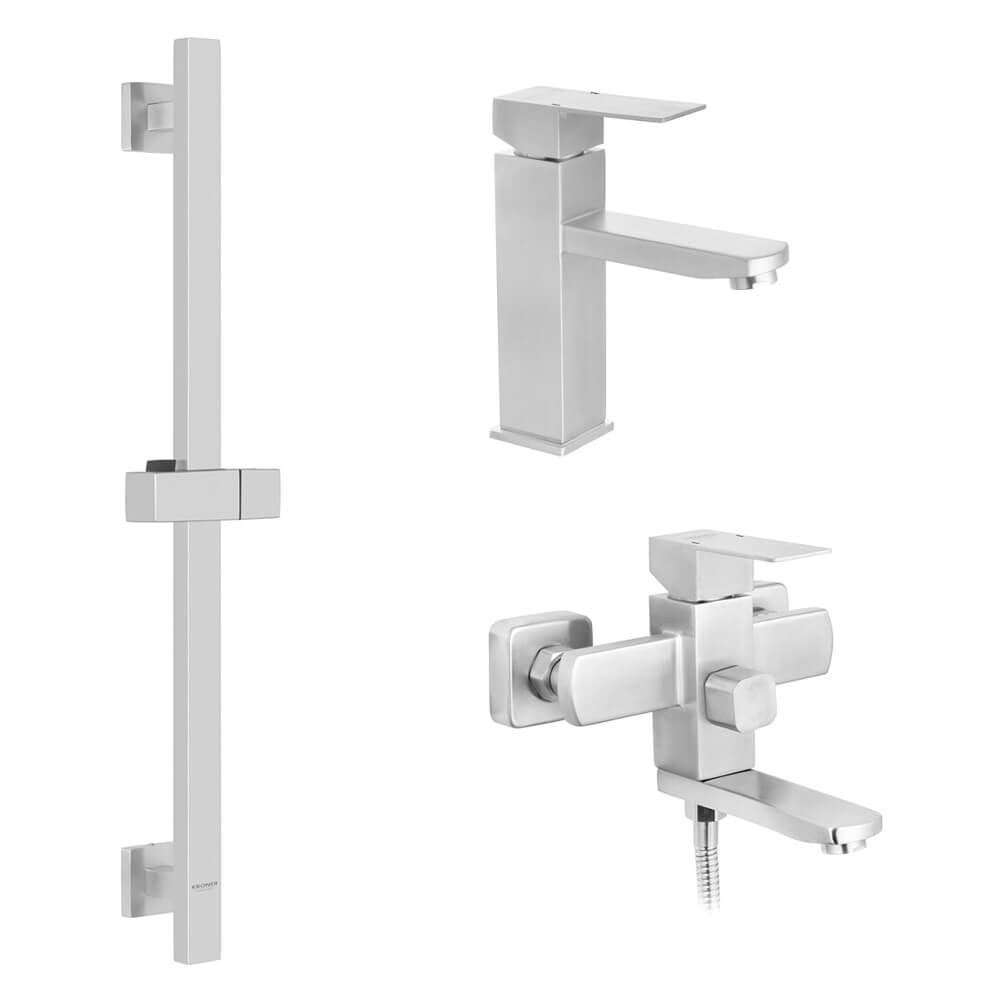 Опис Набір змішувачів Kroner Edelstahl Kubus-ESG010 + змішувач Edelstahl Kubus-ESG060 + штанга для душу Edelstahl Kubus-ESG230
