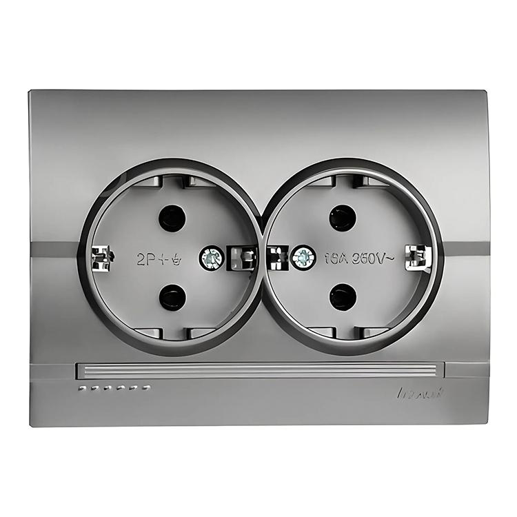 Характеристики товару Розетка 2-ая с заземлением темно-серый металлик DERIY Lezard 702-2929-127B