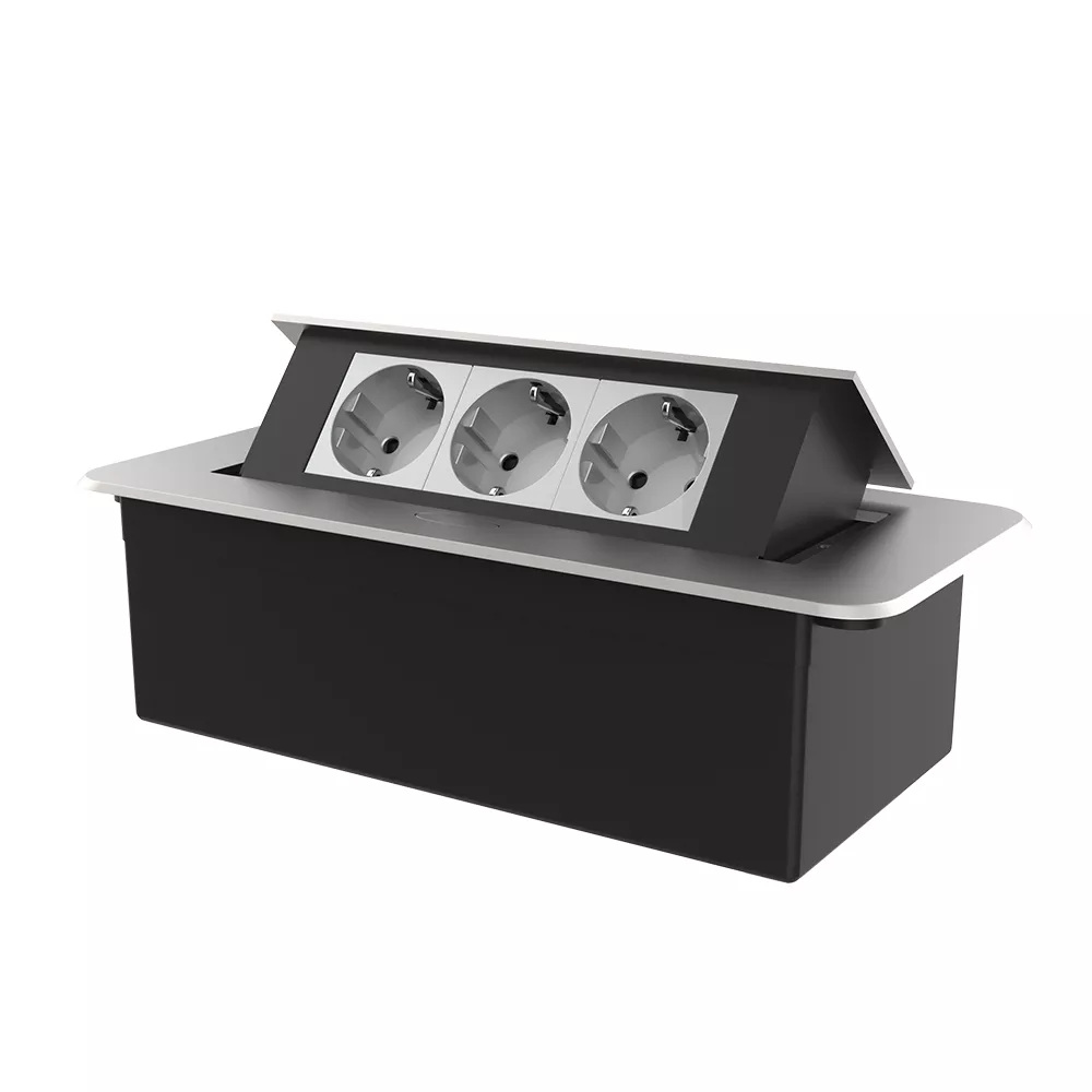Мебельная розетка тройная Livolo черные в сером (VL-SHS013-EU12-S)