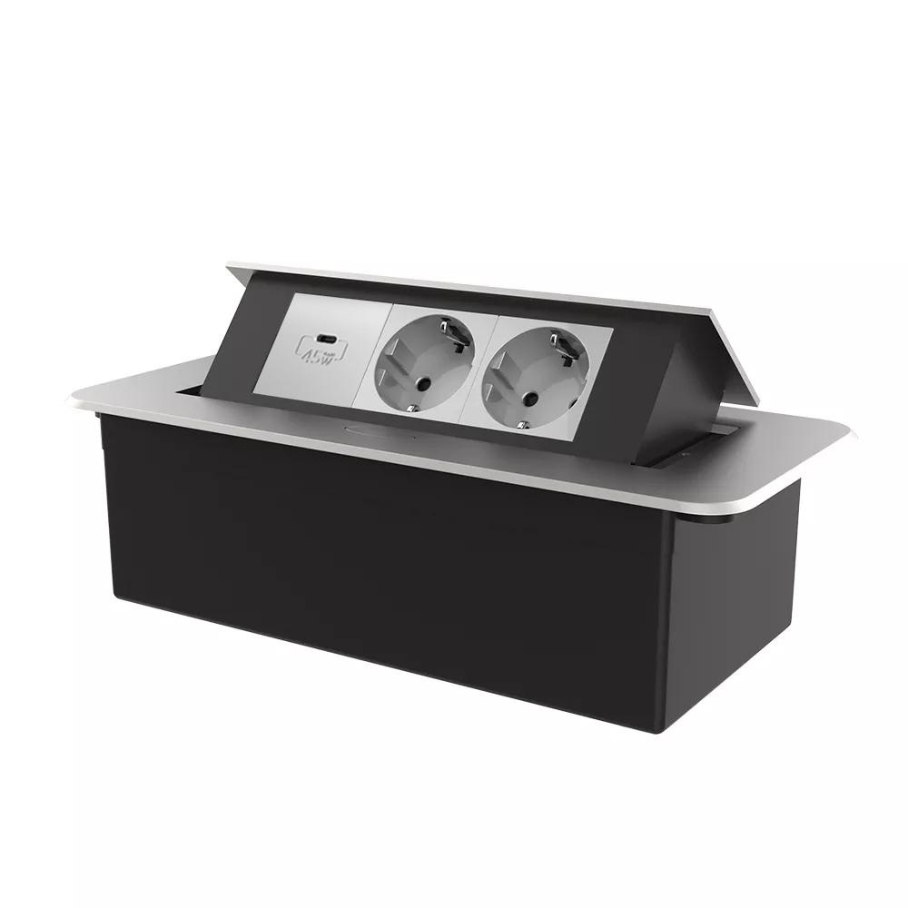 Удобство и стиль в вашем интерьере Выдвижная мебельная тройная розетка благодаря своему стильному дизайну, прекрасно впишется в любой интерьер. Это отличное решение для установки на рабочих местах, в конференц-залах или на кухне, где вы хотите иметь удобный доступ к розеткам или электрическим устройствам, но при этом сэкономить место. Мебельная розетка имеет высокий степень защиты IP40, что надежно защищает ее от пыли и мелких частиц. Врезная розетка изготовлена из прочного алюминия и покрыта специальной краской, обеспечивающей долговечность и надежность. Встроенная розетка плавно открывается после нажатия кнопки, обеспечивая комфорт в использовании. Вы сможете удобно подключать электроприборы, не теряя при этом важного рабочего пространства. В целом, выдвижной розеточный блок Livolo - это инновационный и практичный вариант, который добавит функциональности и удобства вашему помещению. Вы получите доступ к электрическим источникам без лишних усилий, сохраняя при этом важное пространство для работы и творчества. Выходные параметры USB: Type-C: 5V/3A, 9V/3A, 12V/3A, 15V/3A, 20V/2.25A Поддерживаются протоколы зарядки PD, QC, FCP, AFC, APPLE 5V/2.4A, BC1.2 DCP и другие. Комплектация Механизм розетка USB-C 45W Livolo Механизм силовая розетка с заземлением Livolo 2 шт. Пустой выдвижной розеточный люк на 3 модуля Livolo Элегантный внешний вид и универсальный стиль Чистые линии розетки, безупречная форма и тщательно продуманный дизайн придают ей изящество и привлекательность. Благодаря своей универсальности, розетка гармонично впишется в любой интерьер, независимо от стиля. Будь то классический, современный, минималистичный или эклектичный дизайн - этот элегантный изделие всегда будет выглядеть безупречно. Универсальное и гибкое решение Вы можете самостоятельно выбирать модули розеток, которые необходимы для вашего конкретного помещения или рабочего места. Например, если вам нужны обычные электрические розетки для подключения бытовых устройств, то вы можете установить их в блок. Или если вы работаете с компьютером и нужны компьютерные разъемы, то также можете выбрать соответствующие модули. Простой и стильный дизайн Мебельная розетка имеет классический и элегантный вид, который придает помещению особую достоинство и шарм. Ее сдержанный дизайн впечатляет простотой и стильностью, создавая атмосферу гармонии и хорошего вкуса. Оптимизация рабочего пространства Благодаря выдвижному дизайну, мебельная розетка может легко исчезнуть со стола или столешницы, когда ее не используют. Это позволяет эффективно использовать пространство и освободить его от лишних розеток, которые уже не нужны. Удобное и логичное расположение Каждая розетка расположена в удобном месте, обеспечивая удобный доступ для подключения устройств. Уникальный выдвижной дизайн розетки позволяет с легкостью закрыть ненужные розетки. Вам не нужно будет беспокоиться о лишних кабелях или розетках, которые занимают место. Просто закройте розетку после использования, и ваше рабочее пространство будет выглядеть организованно и заранее подготовлено для следующего задания. Габаритные размеры Мебельная розетка имеет внешние размеры 265х118 мм, с глубиной всего 70 мм. Эти компактные размеры позволяют легко вписать розетку в любой мебельный дизайн без лишнего занятия пространства. Мебельный люк и его монтажная кор