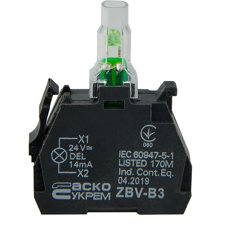 Опис Блок для подсветки Аско Укрем ZBV-B3 зеленый 24В для кнопок TB5 (A0140010210)