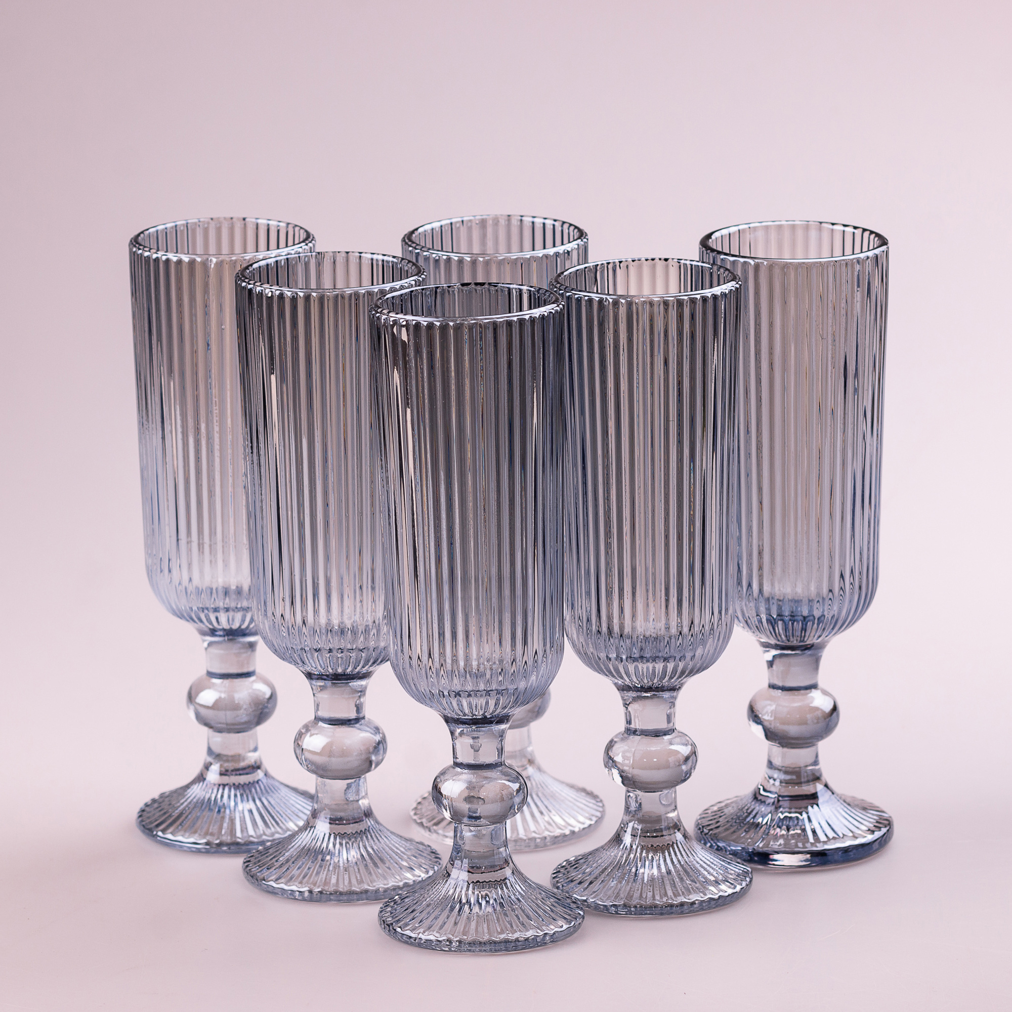Набір келихів для шампанського ребристих на тонкій ніжці TS Kitchen 350 мл 6 штук (HP95)