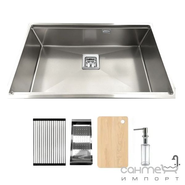 Размеры: 740x460x200 мм. Производитель: Fabiano. Страна: Турция. Материал мойки: нержавеющая сталь. Форма мойки: прямоугольная. Вид мойки: одна чаша. Цвет мойки: хром. Тип монтажа: врезной. Толщина стали, мм: 1,2. Поверхность стальной мойки: декор. Комплектация: мойка, коландер, разделочная доска, сифон, дозатор, корзина/сушка. Более подробную информацию Вы сможете найти на сайте santehimport.com