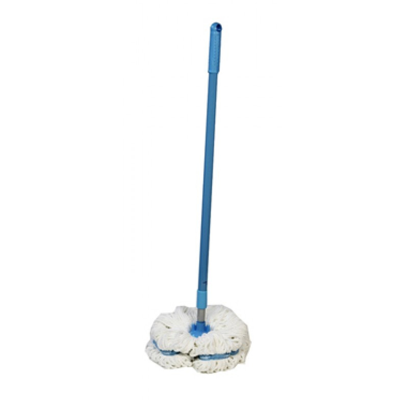 Классическая швабра из прочного и легкого алюминия, с телескопической ручкой. Насадка на швабру сделана из микроволокна в виде супер-абсорбирующих сплетенных кисточек.