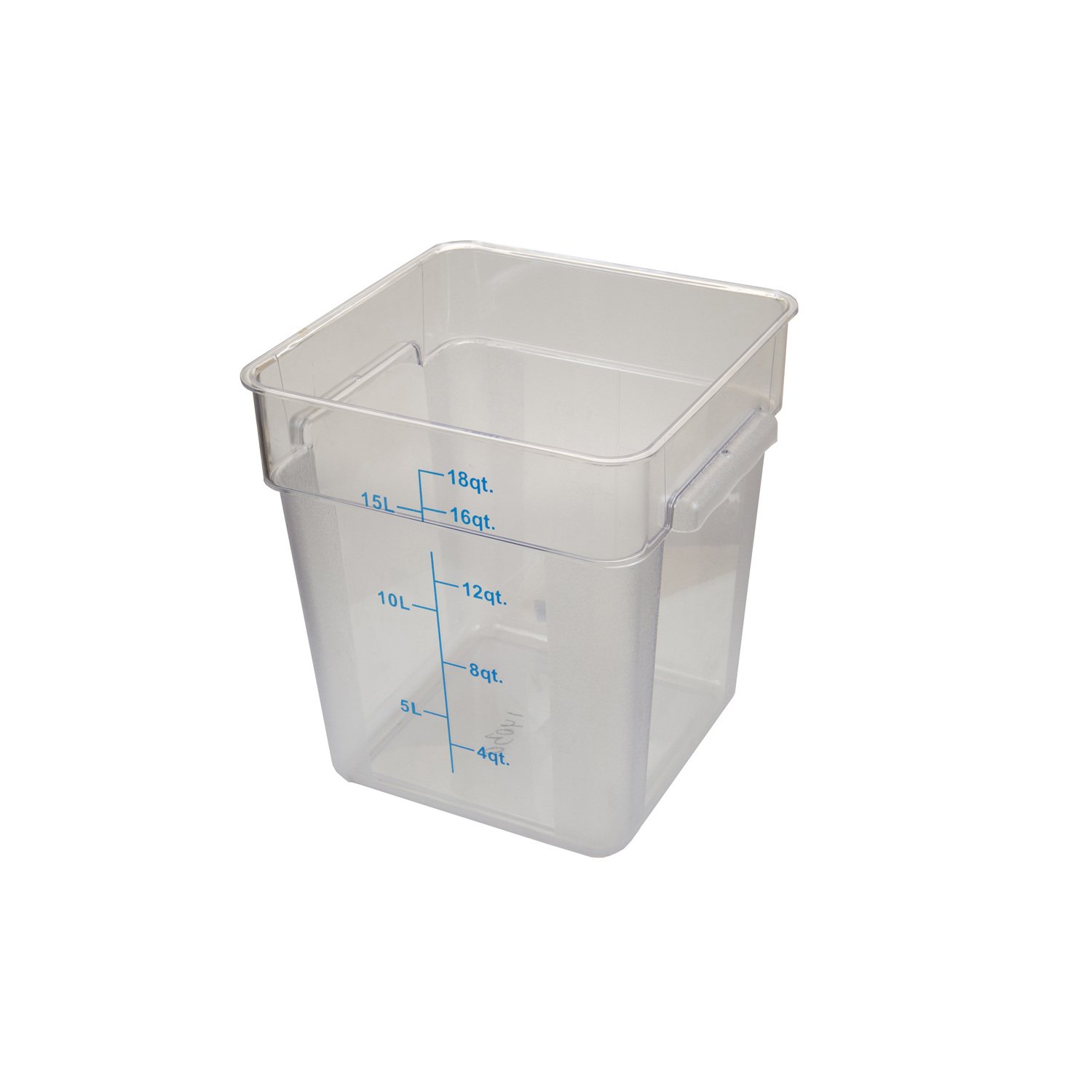 Данный пищевой контейнер используется для хранения продуктов питания. Цвет: прозрачный. На поверхность контейнера нанесена мерная шкала. Материал: прочный поликарбонат. Объем: 17 л. Форма: прямоугольная.