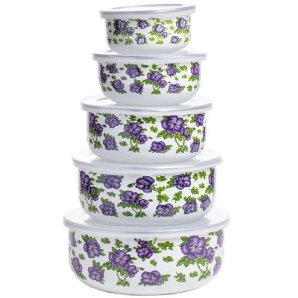 Набор судочков эмаль А-Плюс 0967 5 шт представляет собой набор специальных контейнеров предназначенных для хранения и транспортировки пищевых продуктов. Изготовлены из стали покрытой белой эмалью, украшены ярким цветочным рисунком.