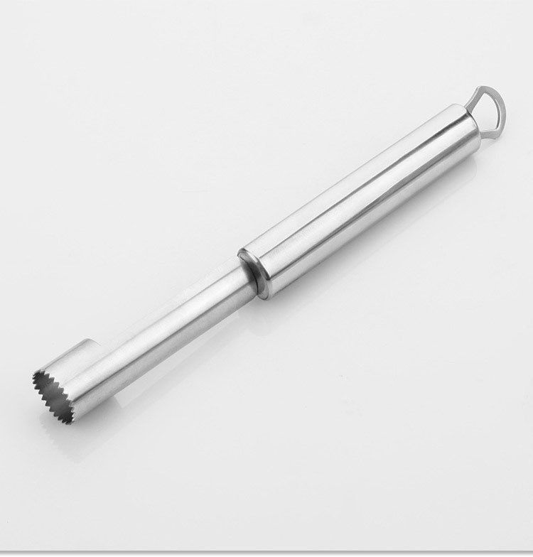 Нож для яблока FRICO FRU-345 Нож Frico FRU-345 - практичное приспособление для быстрого удаления сердцевины из яблока, груш. Выемка сердцевины происходит за счет давления и вкручивания ножа в яблока. На практике это довольно простой, самый легкий и быстрый способ удалить середину яблока. Нож для вырезания сердцевины яблока Frico полностью изготовлен из нержавеющей стали, носик сделан волнистым для легкого проникновения в сердце яблока. В отличии от других подобных ножей для удаления сердцевин из яблок у Frico FRU-345 предусмотрено удобное ушко для тех, кому проще вывешивать кухонные принадлежности. На рукоятке ножа для удобства пальцев сделана пластиковая подложка с обеих сторон - это не позволяет скользить пальцам во время выемки сердцевины. Оставшаяся сердцевина яблока достается толчком пальца или можно потянуть за хвостик. Если вы продолжите удалять следующие сердцевины у яблок, то она выпадет сама. Характеристики: Нож для выемки сердцевин яблок, помидор, груш. Размер: 20х1.8 см. Материал ножа: нержавеющая сталь. Ручка: нержавеющая сталь.