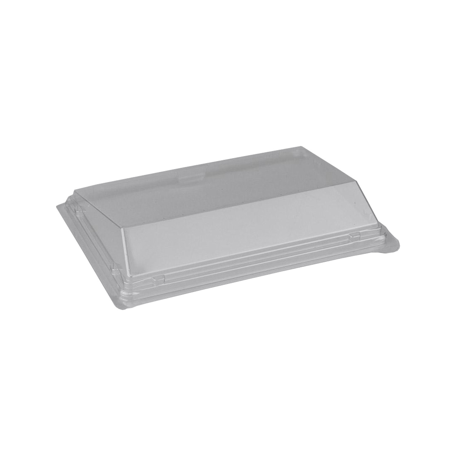 Крышки для контейнеров продаются в упаковках по 70 штук. Плотно закрываются, не допуская протекания. Изготовлены из прозрачного пластика PET. Гладкая поверхность крышек позволяет размещать этикетки. Крышки можно хранить компактно благодаря штабелируемой форме. Одноразовые контейнеры для суши можно купить отдельно.