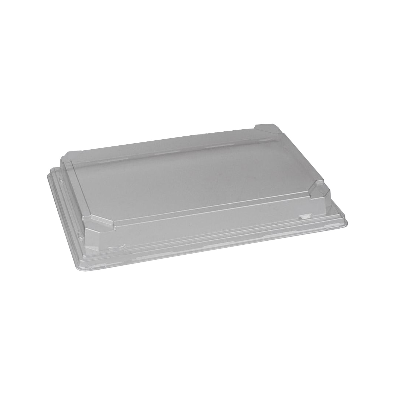 Крышки для контейнеров продаются в упаковках по 110 штук. Плотно закрываются, не допуская протекания. Изготовлены из прозрачного пластика PET. Гладкая поверхность крышек позволяет размещать этикетки. Крышки можно хранить компактно благодаря штабелируемой форме. Одноразовые контейнеры для суши можно купить отдельно.