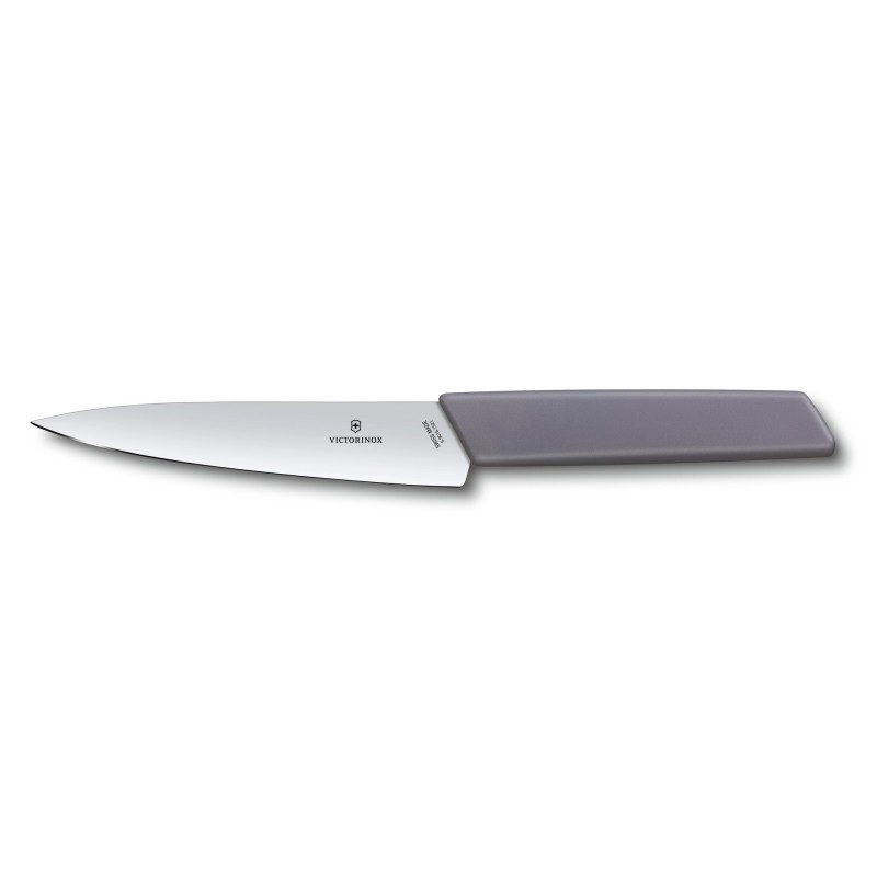 Современный нож с острым лезвием длиной 15 см отлично подходит для выполнения различных задач, таких как очистка от кожуры, нарезка и разделка. В обновлённой коллекции Swiss Modern традиционная деревянная рукоять из древесины ореха была заменена на модную синтетическую ручку. Легко чистить и мыть в посудомоечной машине, что делает его идеальным ножом для повседневного использования.