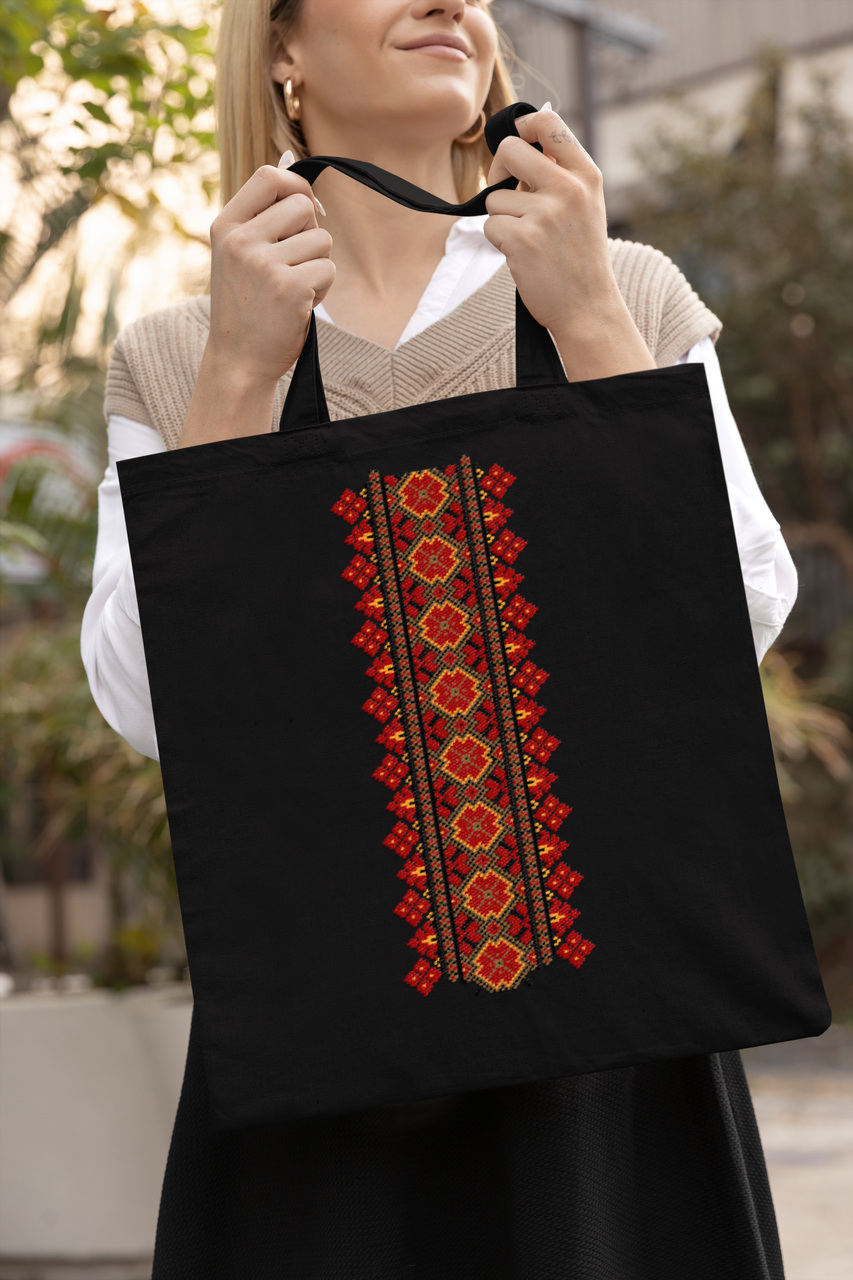 Эко-сумка шоппер с патриотическим принтом "Украинский орнамент цветочный" Кавун черный